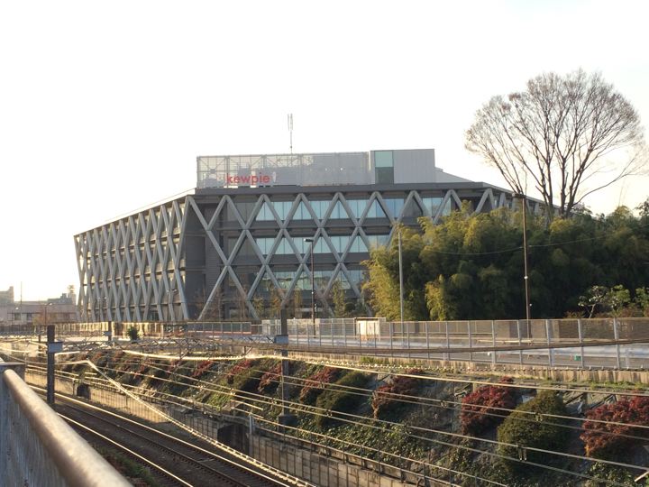 キューピー本社見ながら、線路を渡ります。