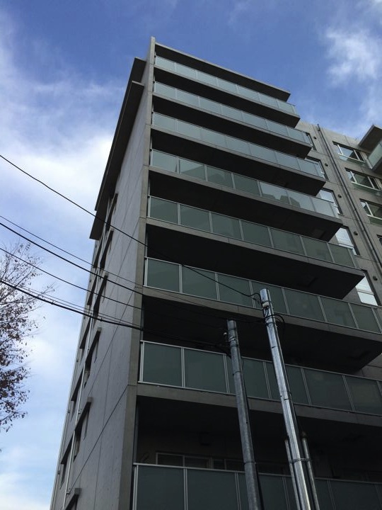 むむぅ。マンションは普通だが双子の雨樋は健在。
