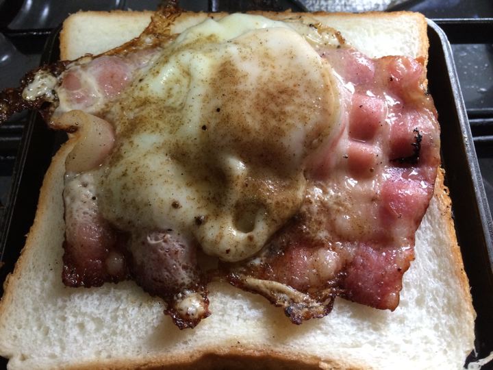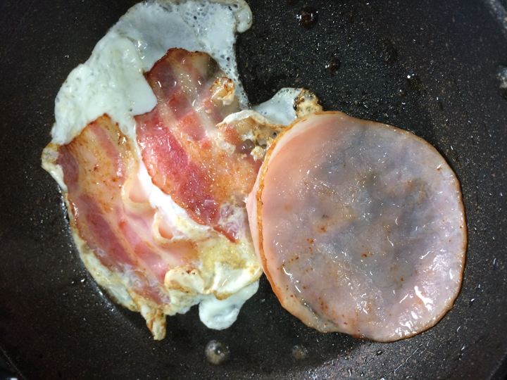 ちょっと贅沢にベーコンハムエッグスラチーバウルー!