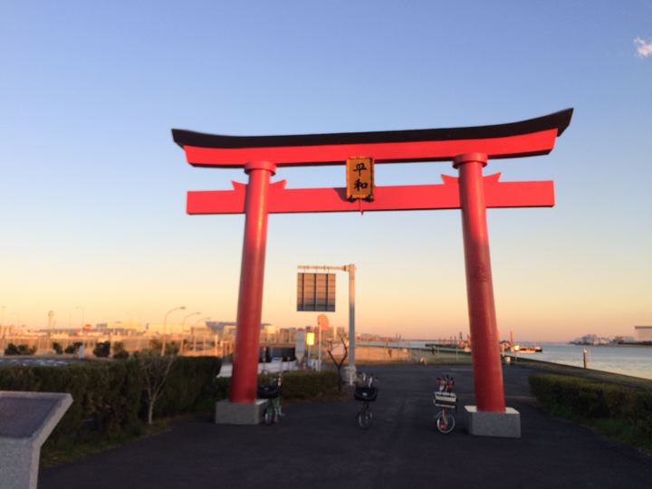 大鳥居から輪行で帰ります。