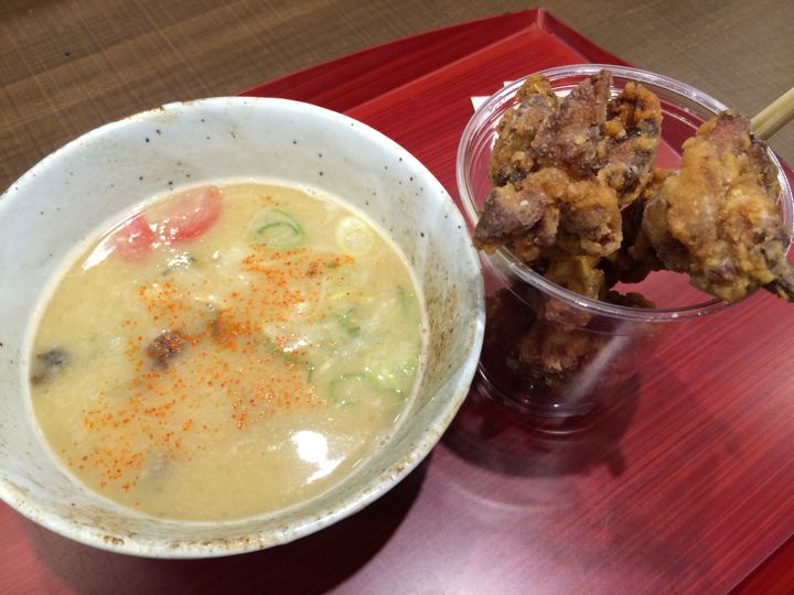 仕方なく宇佐唐揚げと大曲納豆汁で、〆。うみゃ〜!