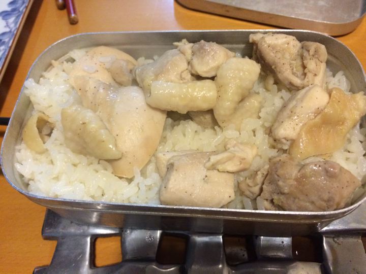 メスティンで久々に海南チキンライスで、終了。