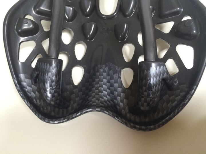 あくまでカーボン風で一見ダサい感じなのだが、実際軽いし