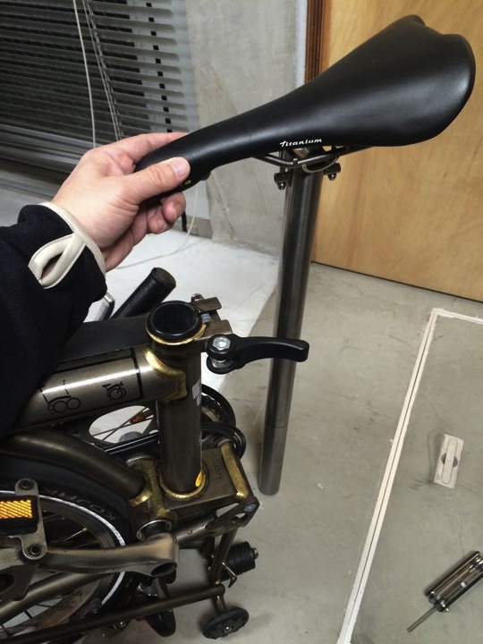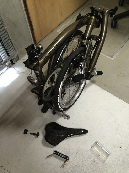 Brompton軽量化ラストスパートは一旦休憩!カーボンサドルのチタンレールとペンタクリップをブラックアウト!の巻