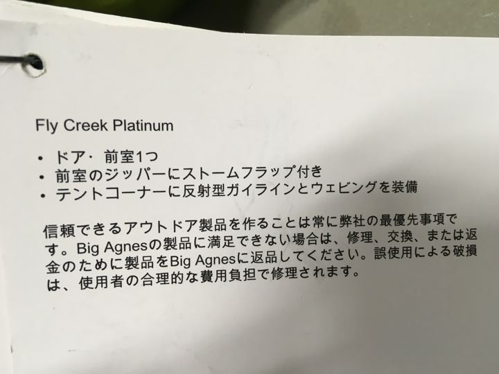 2015年10月のお話。フットプリント(純正グランドシート)だけ、なぜか興奮して先に買ってしまっていたBig Agnesさんのウルトラライトな1人用テントのFly Creek 1 Platinumが届きました!