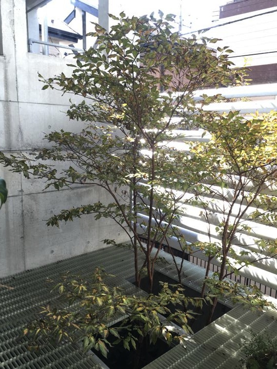 晩秋とは言え、中庭のヒメシャラの葉っぱがまだ散ってない頃のお話ですね。