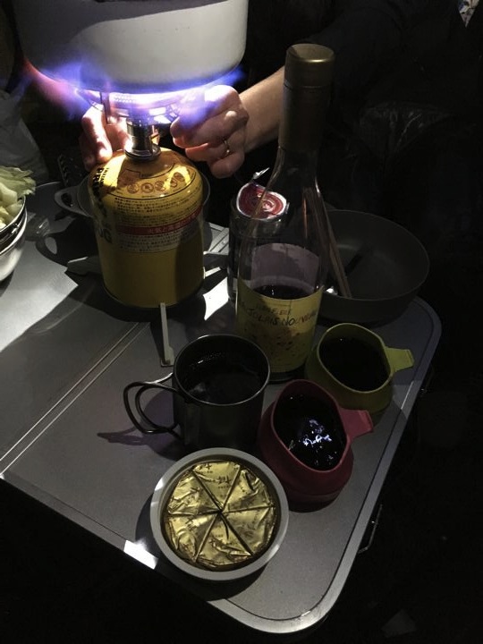 リョウさんもジェットボイルでファイヤー!ボジョレーとプレモルで乾杯!