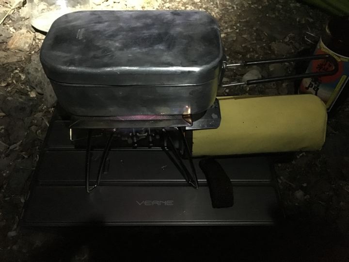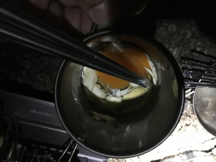 昨夜から事前に冷凍した食材をソフトクーラーにつめました。ぱんぱんになったのでオスプレイの外、サーマレストの上に装着。保冷剤はもうひとまわり大きい方が良かった!説明書どおりのサイズにしたのに〜!じぐじょ〜!