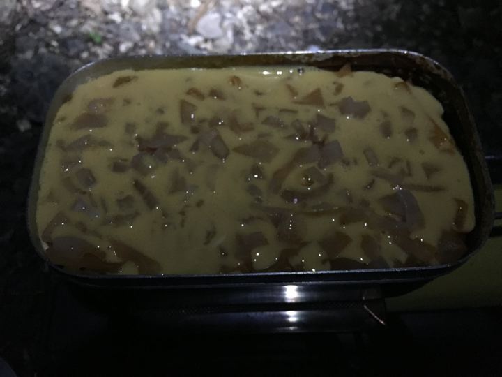 〆はメスティンで作る「いきなりオムライス」です。