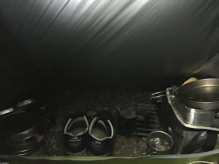 最小限の前室にクッカー類をしまい込みます。