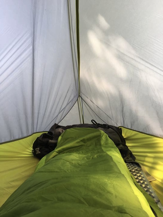 今回の寝具は、サーマレストの断熱マットといつもの夏用シュラフとエアーまくらのみ。