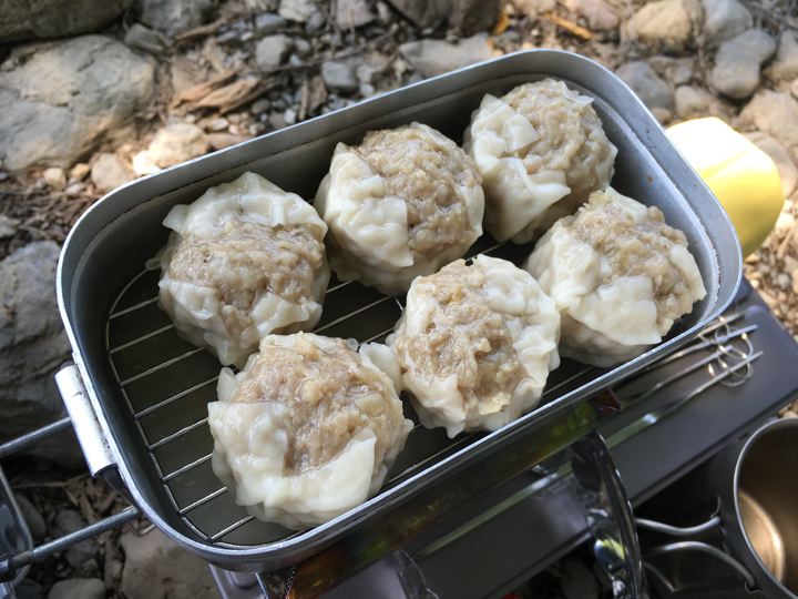 メスティンにジャストサイズの網が入手出来たので、しゅうまいを蒸します。