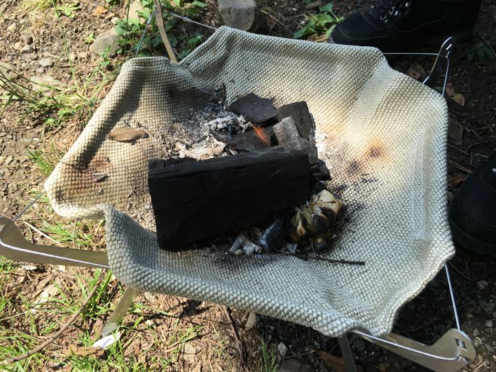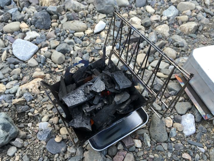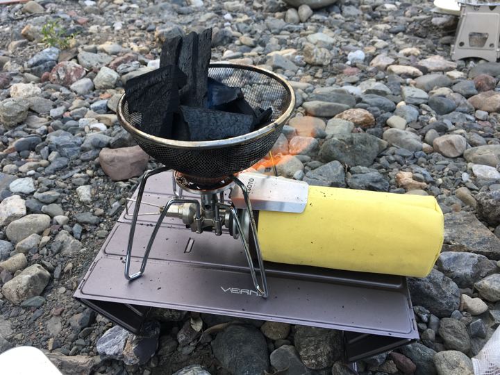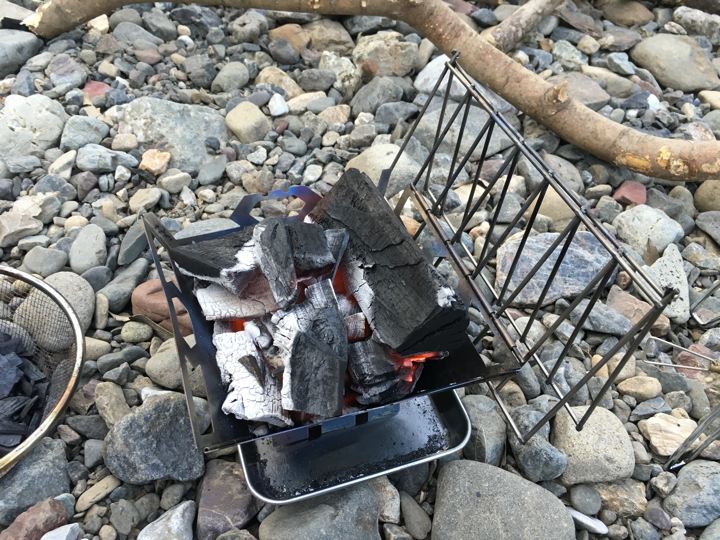 着火したらVARGO TITANIUM FIRE BOX GRILLに炭を移します。