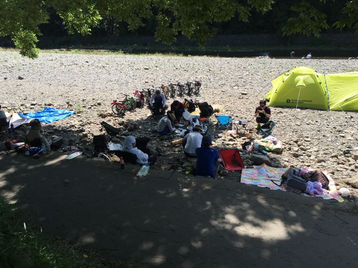 折角河原にいるので、川すれっすれのキワに張ります。向こう側にも似た様な方々が・・・