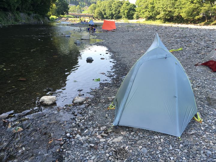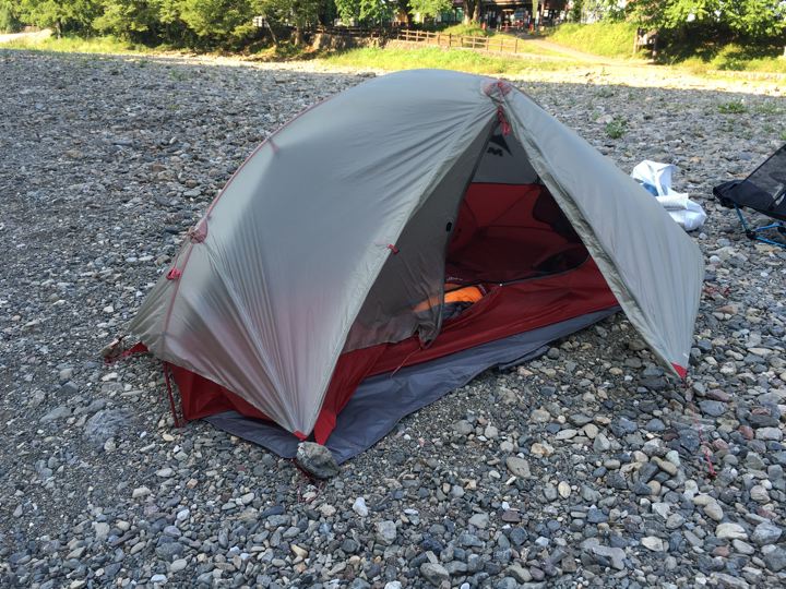 初めてお会いしたパパはMSRの超軽量テントに肉抜きエアマット。むむぅ。やるなぁ〜。