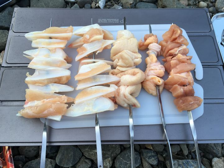 やげん軟骨、鴨皮、もも。結構串刺しは面倒ですが、頑張ります。
