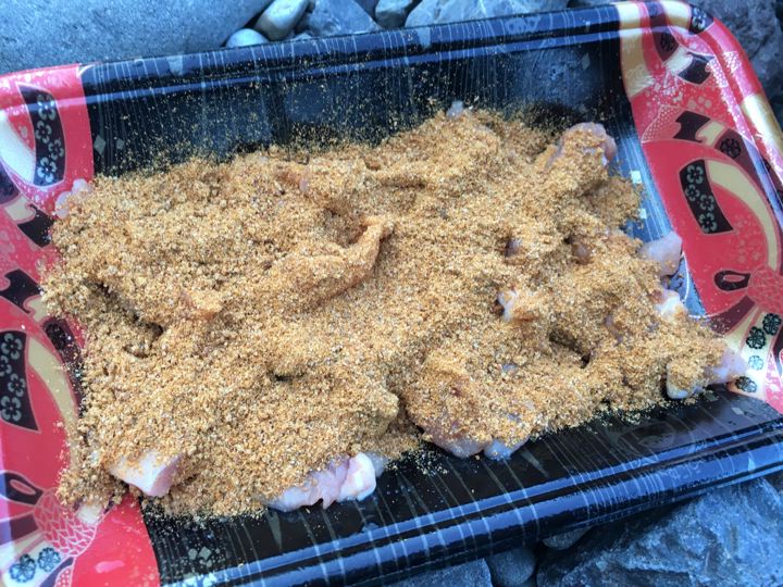 鶏肉にまぶして・・・