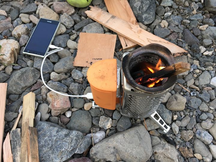 焚火発電でスマホを充電とか・・・