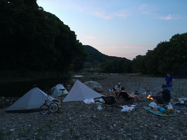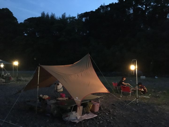 スノーピークさんやコールマンさんなどの、どでかテントとタープでグランピング的なファミリーキャンプ(オートキャンプ)が圧倒的多数でございます。我々が少数派なんだと知りました。とほほ。