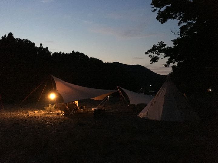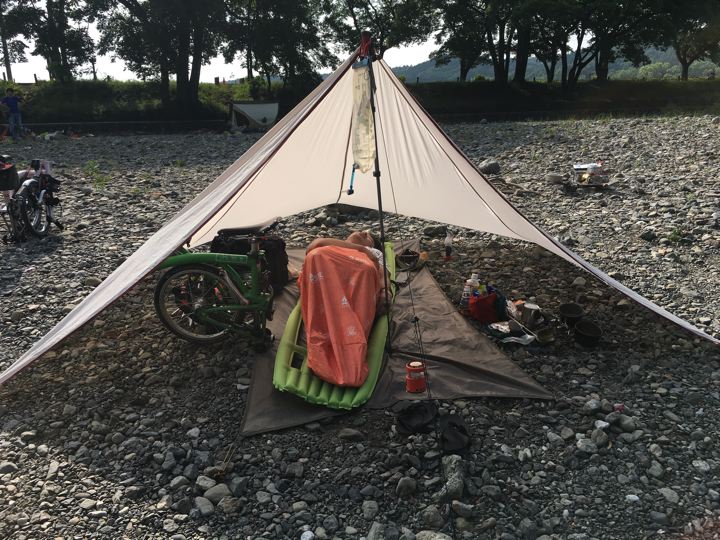 リョウさんはいつものネイチャーハイクでタープ泊。男前や。タープ泊なんて無理。