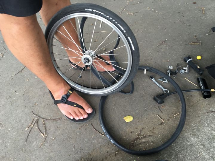 コジャックのパンク修理。自分で過ぎ出来るのは偉い。