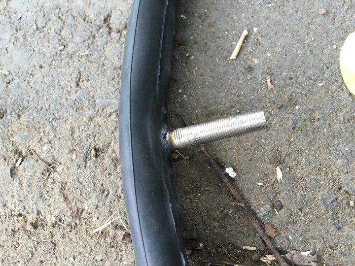 バルブの根元で漏れてたみたい。自転車屋さんみたいに手際よく治してました。