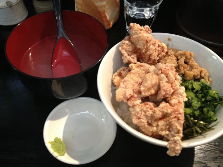 これが噂のぶっかけ丼!鳥の唐揚げ丼なのです!