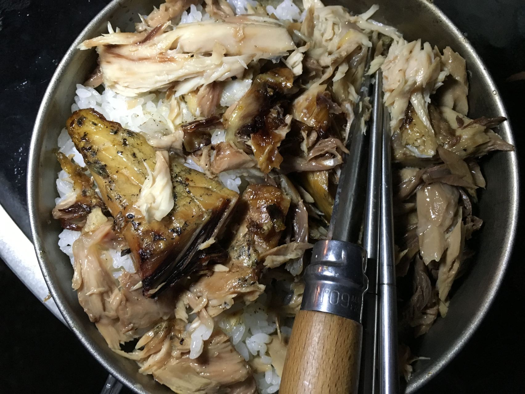 マグロのカマほぐして、マグロのカマ焼きほぐし丼!うみゃ~!