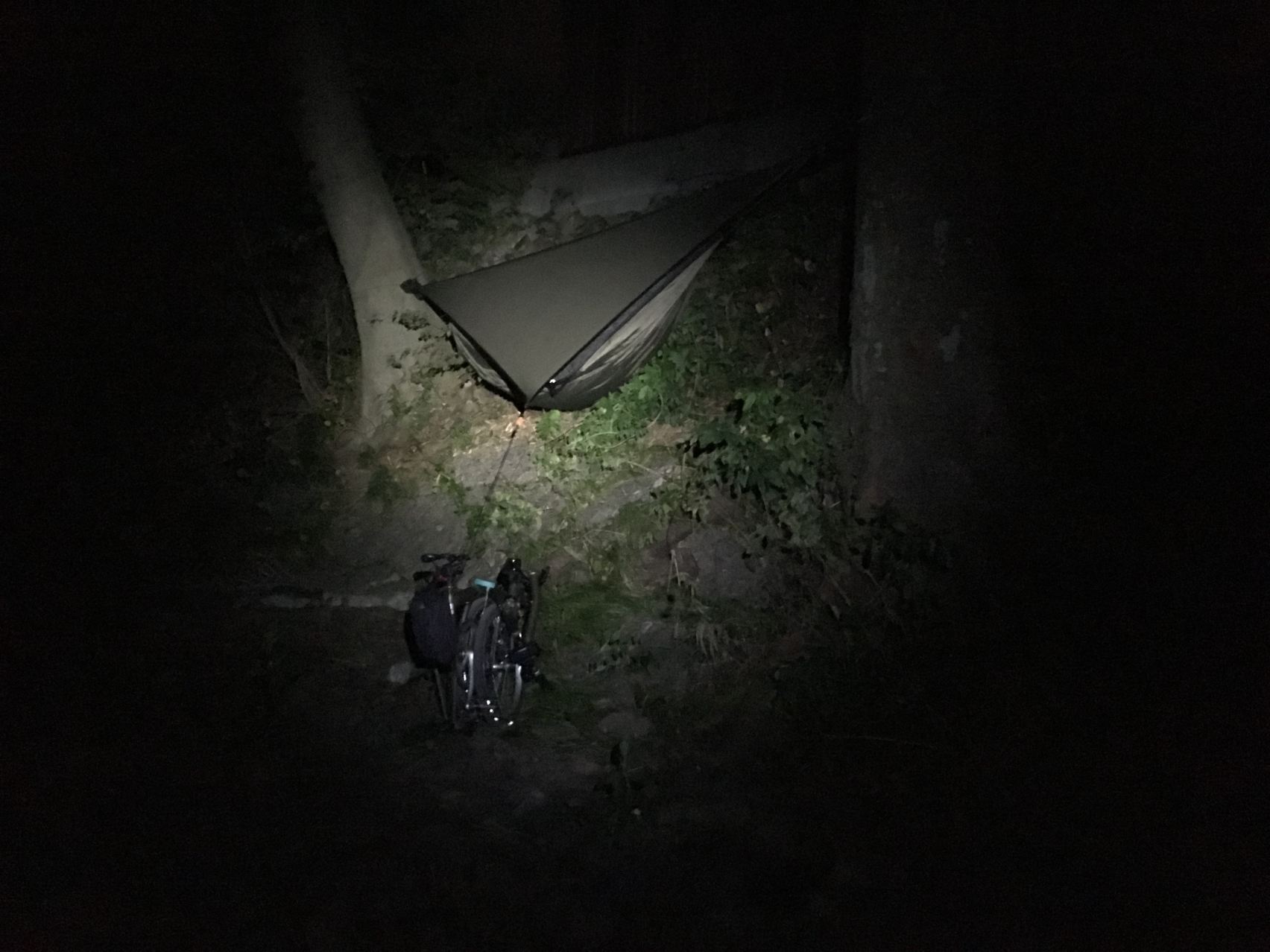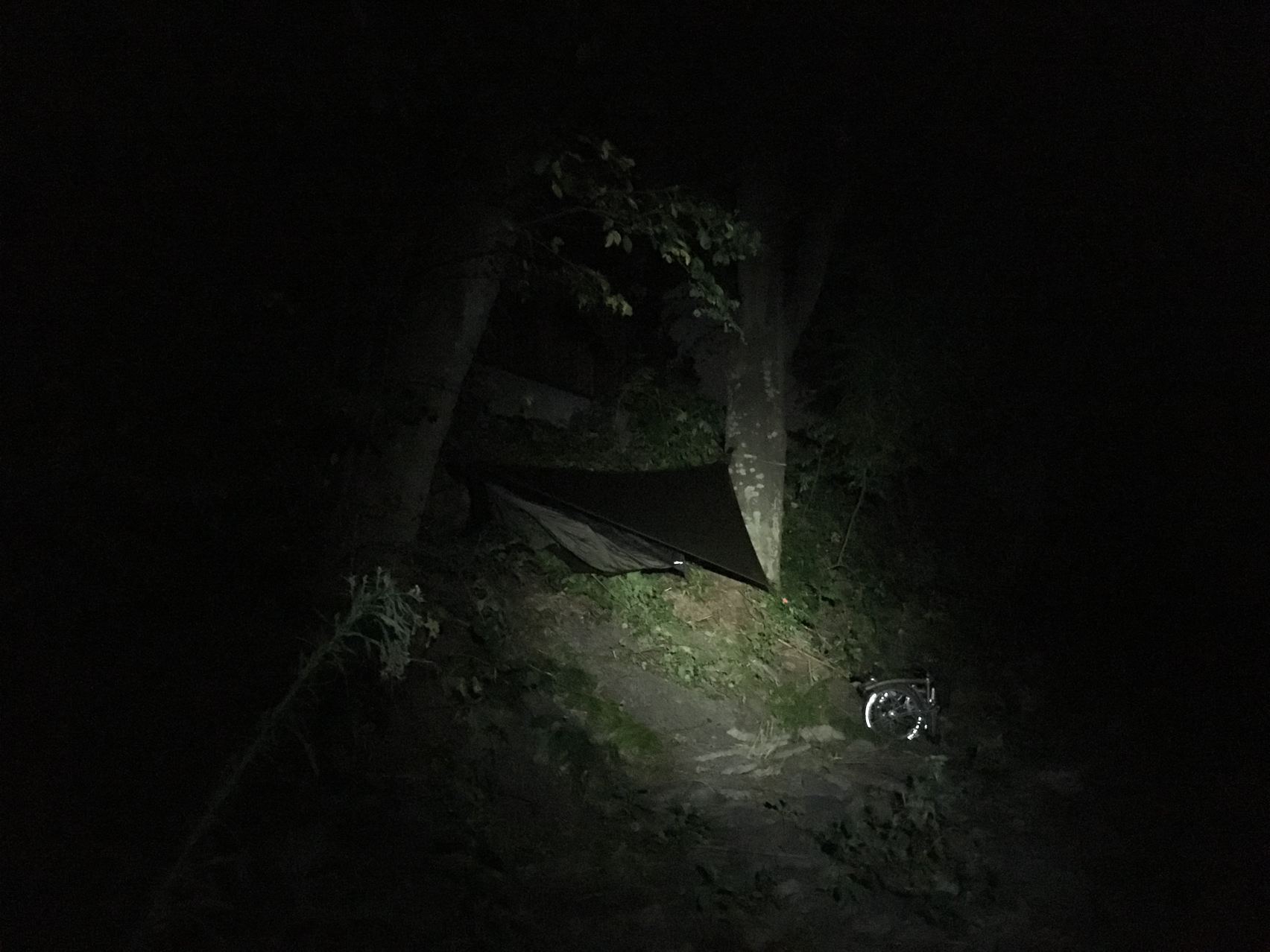 暗闇の中で、ガケ地になんとかへねった!