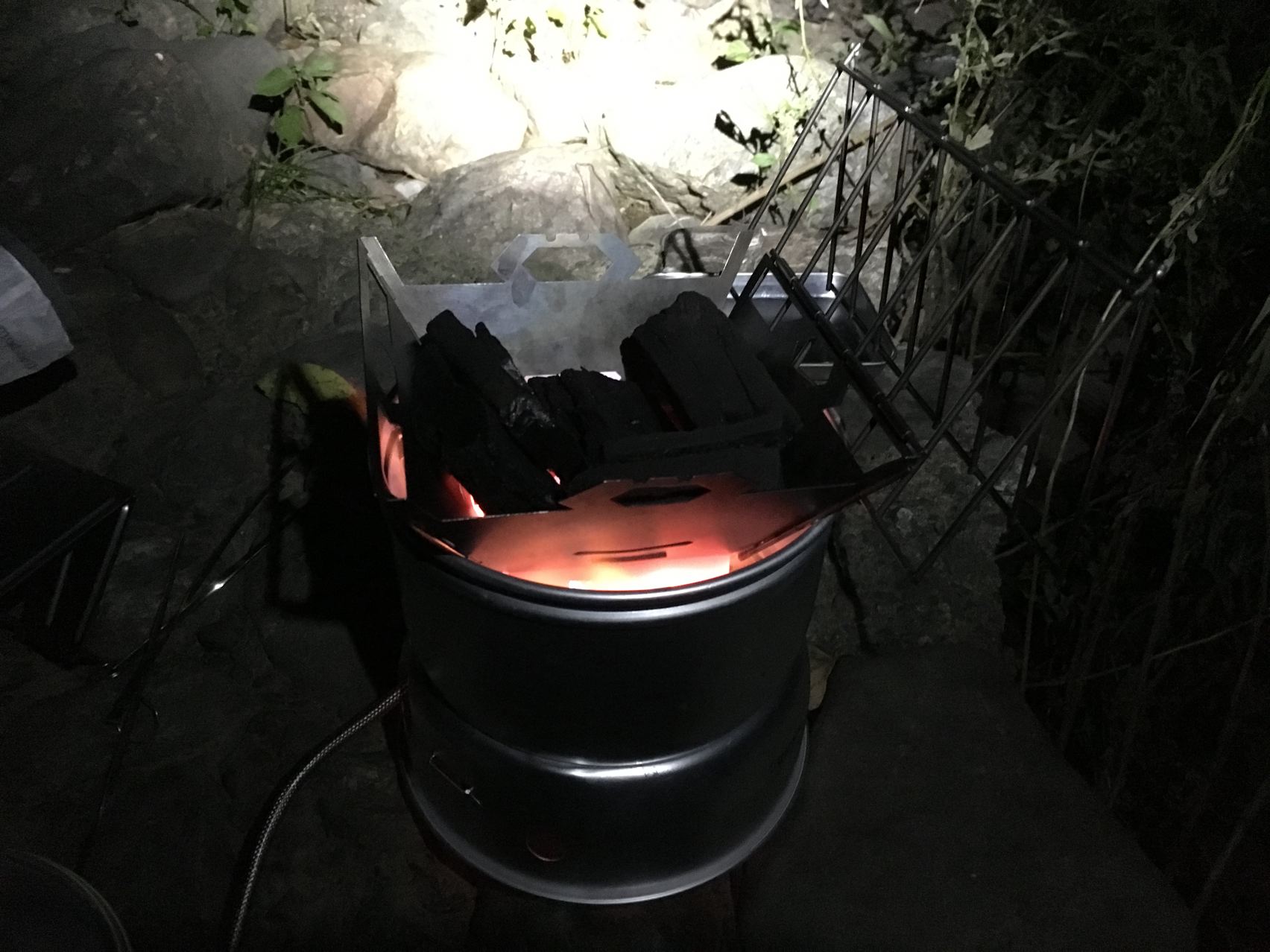 いつもの様にストームクッカーにて備長炭にファイヤー!