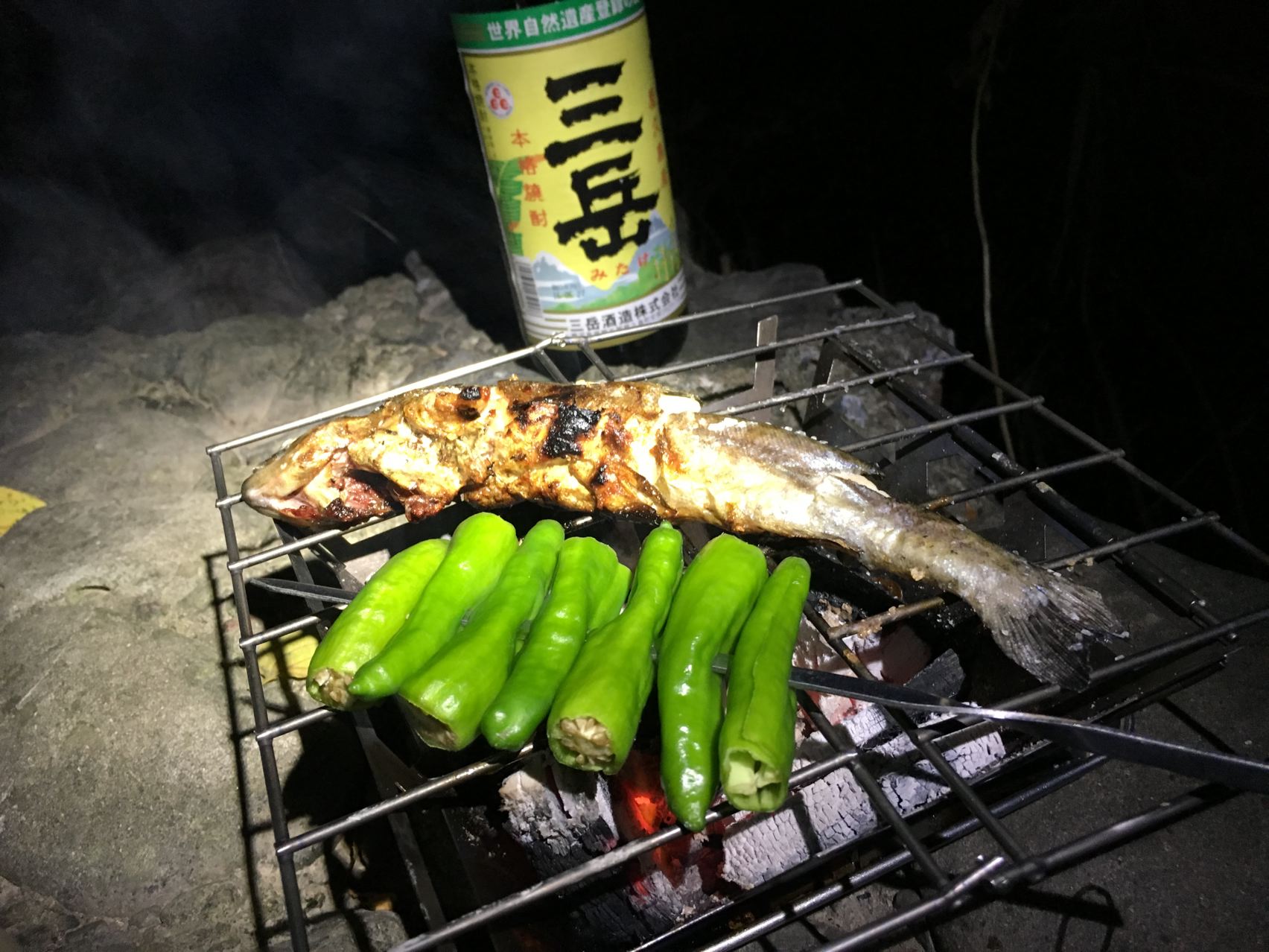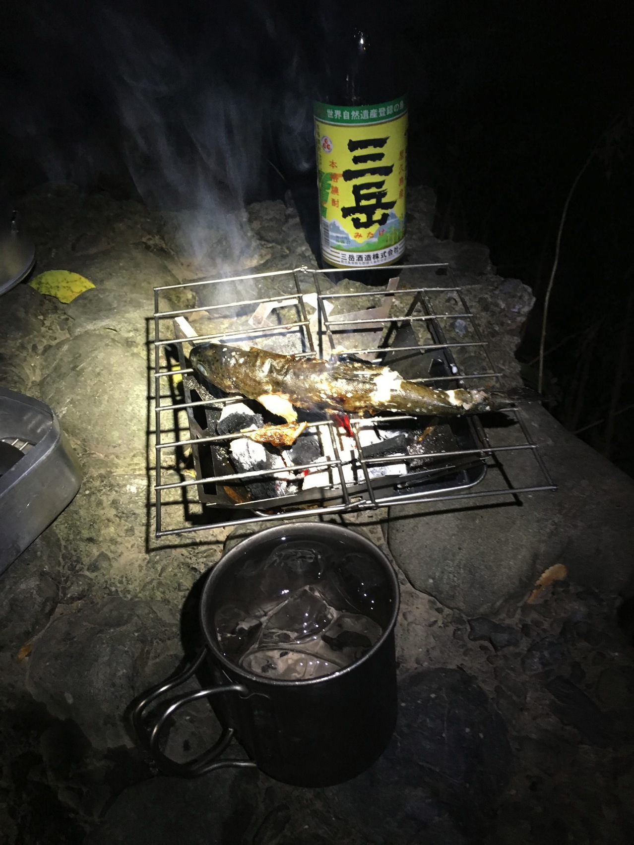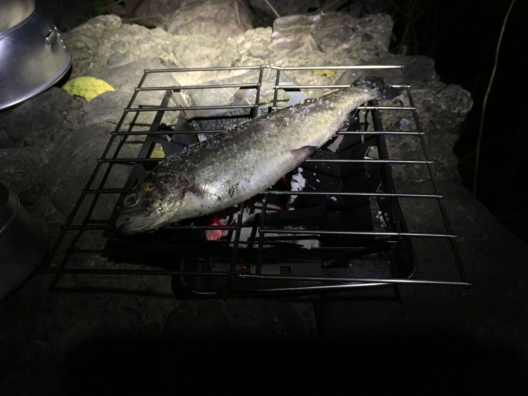ニジマスの炭火岩塩焼き。うみゃ~!