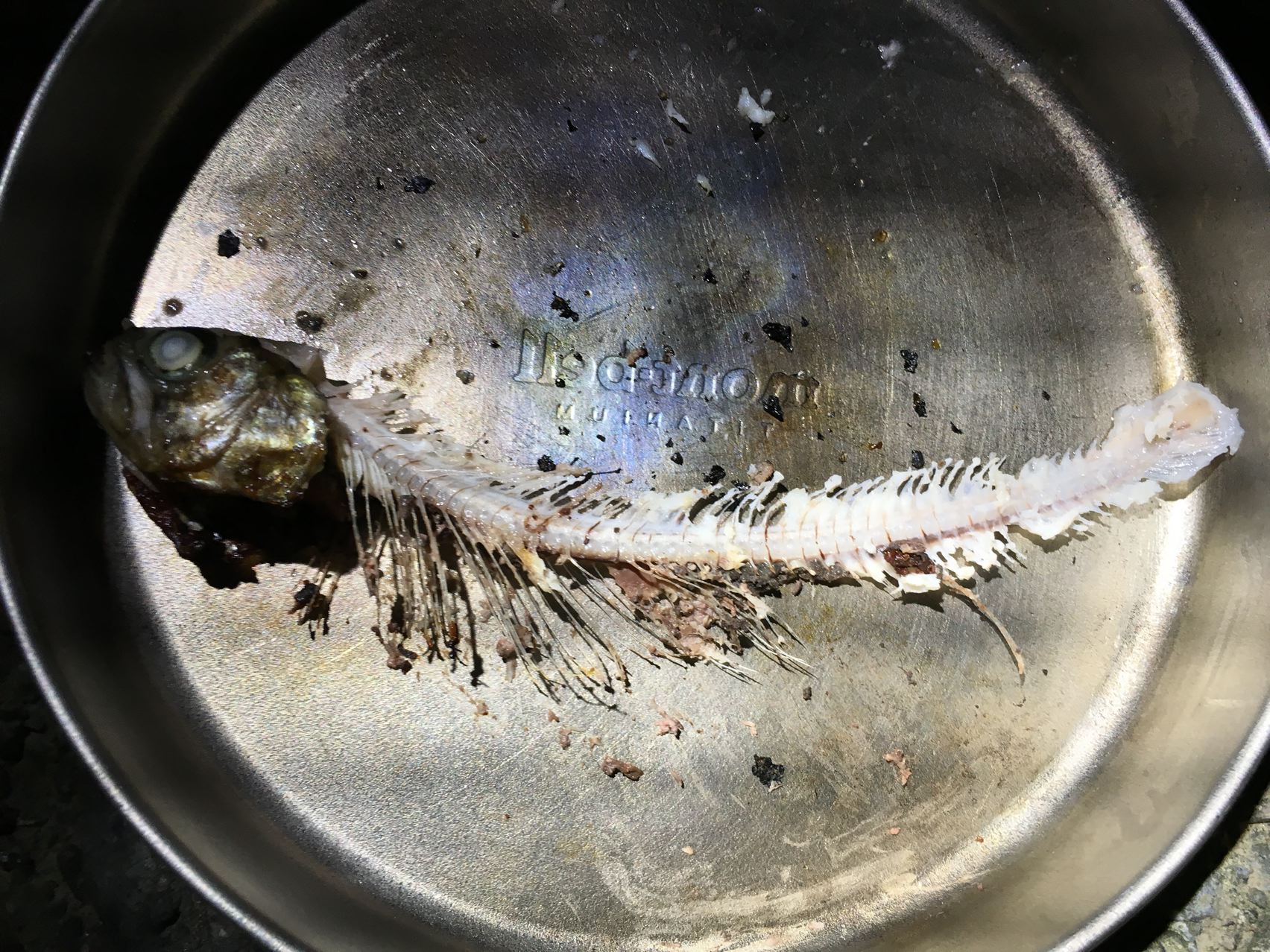 いつもの様に親父の教え。骨は醤油つけて焼いて喰え。