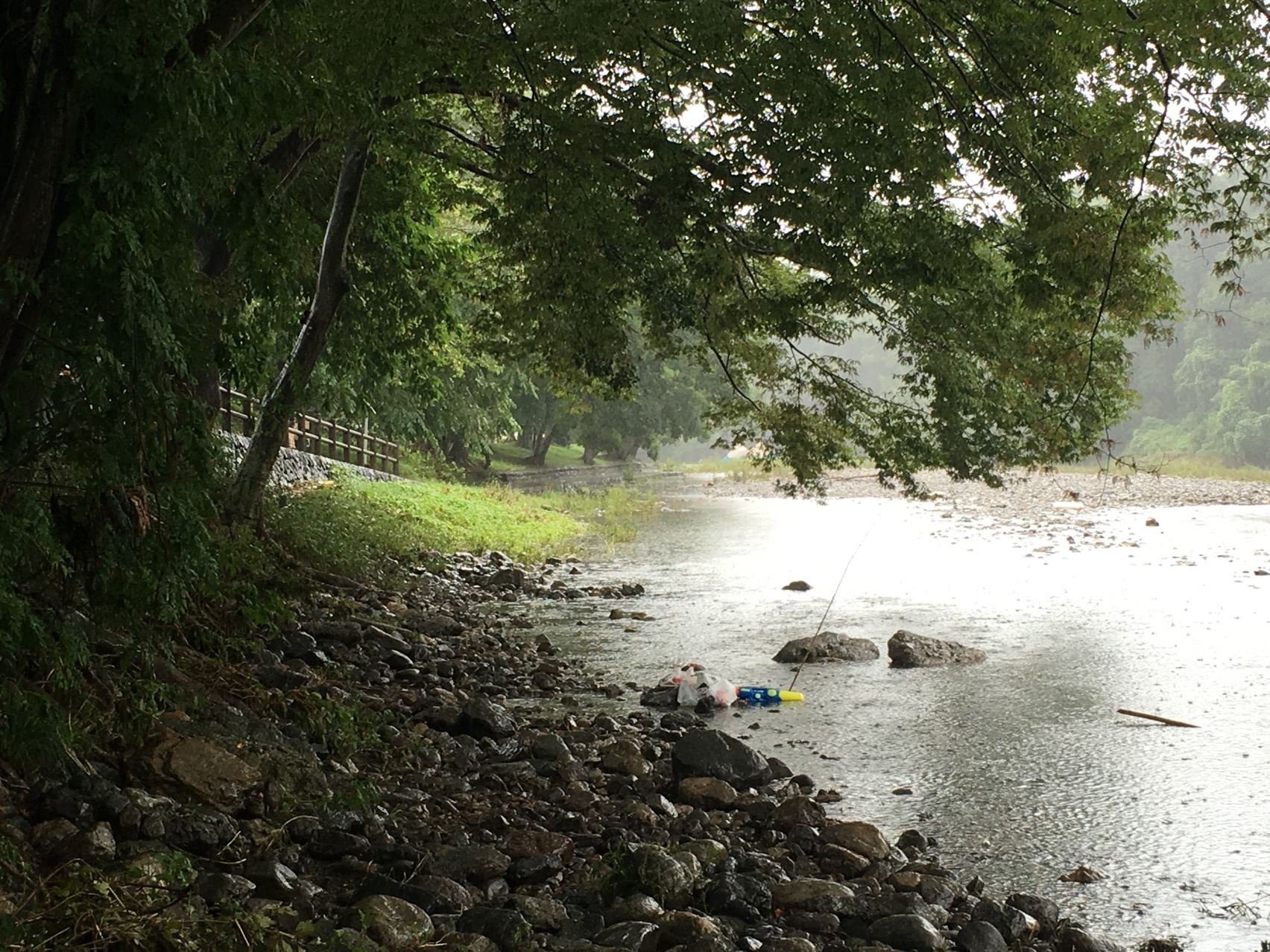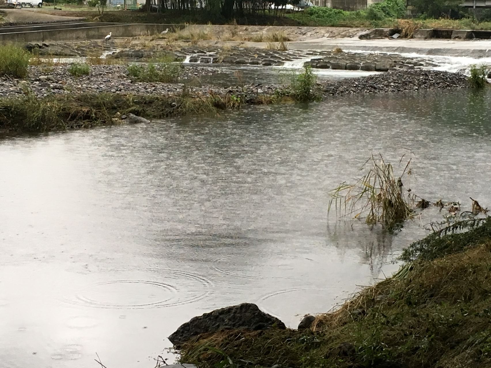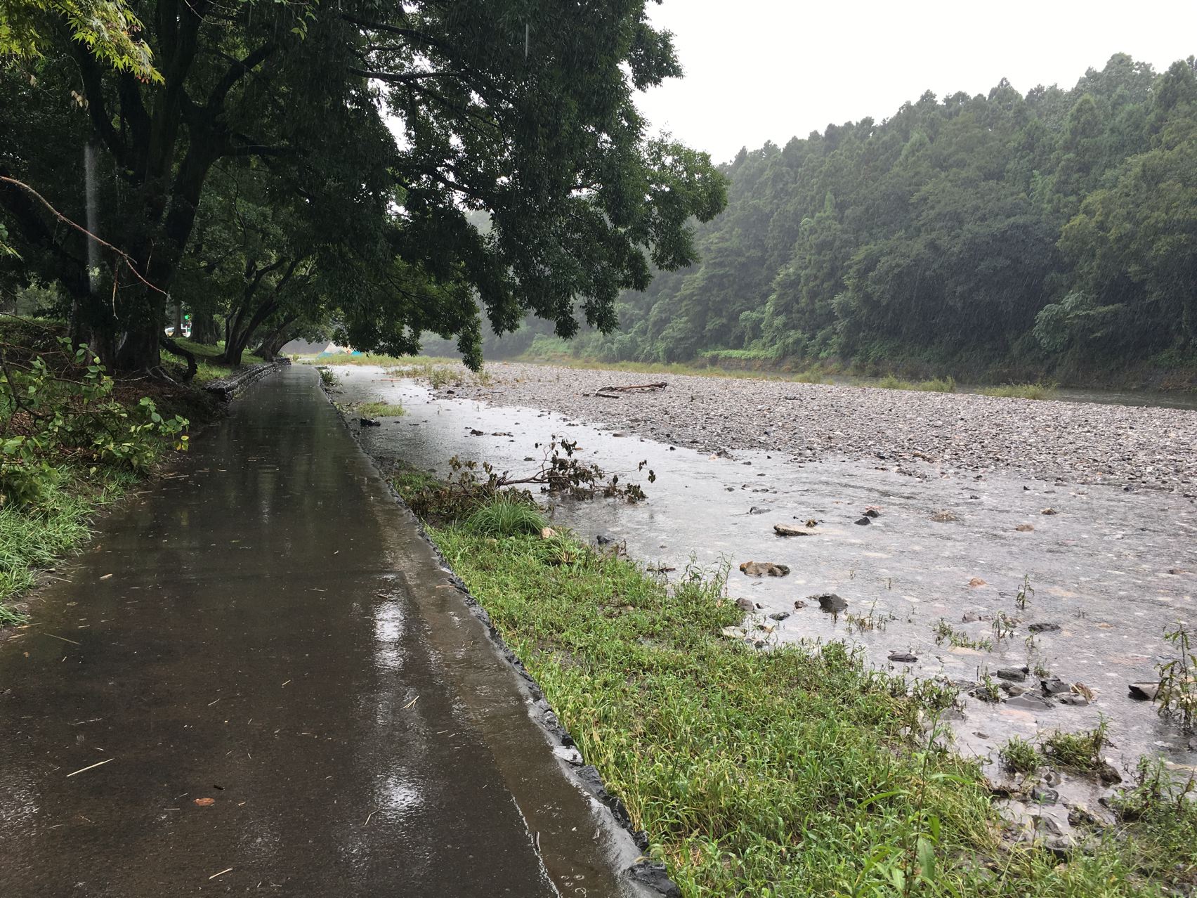 前回BCMでみんなで集まった河原も水浸しでした。確かにこりゃダメだ。