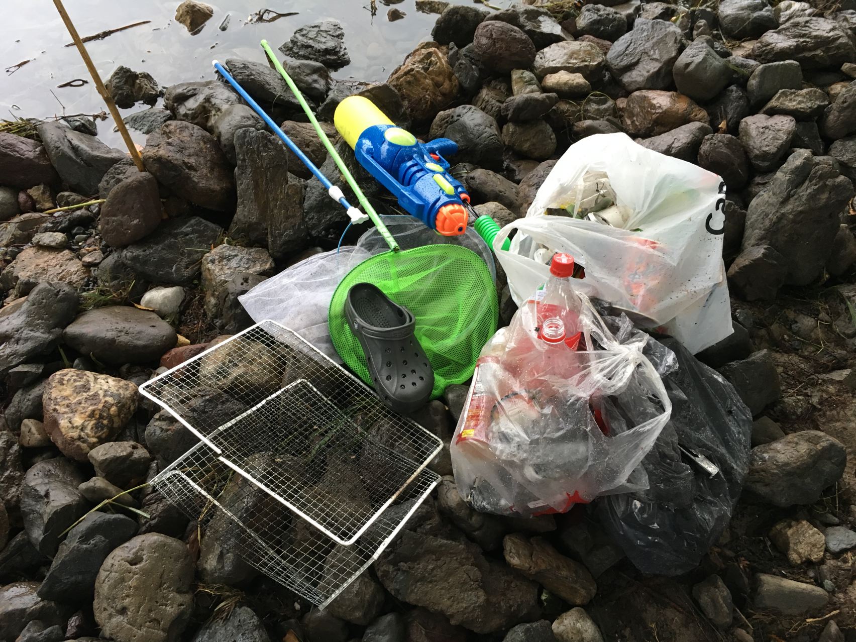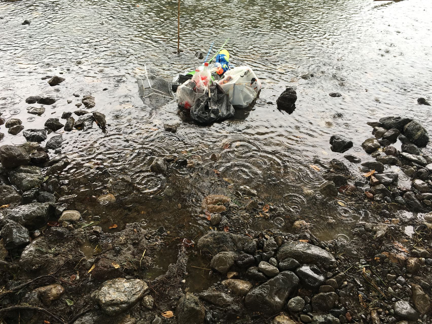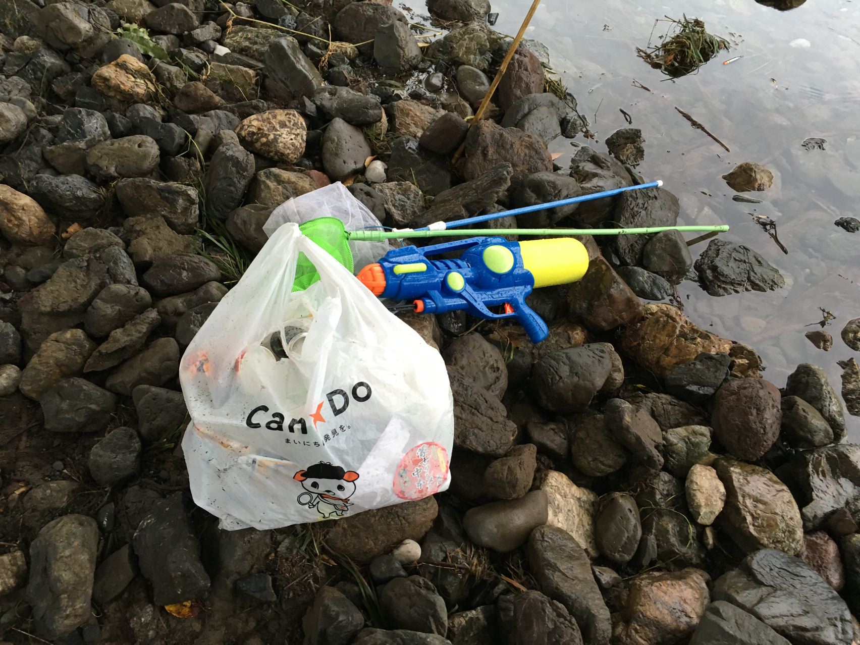 ついにさっき集めたゴミまで浸かってしまいました。