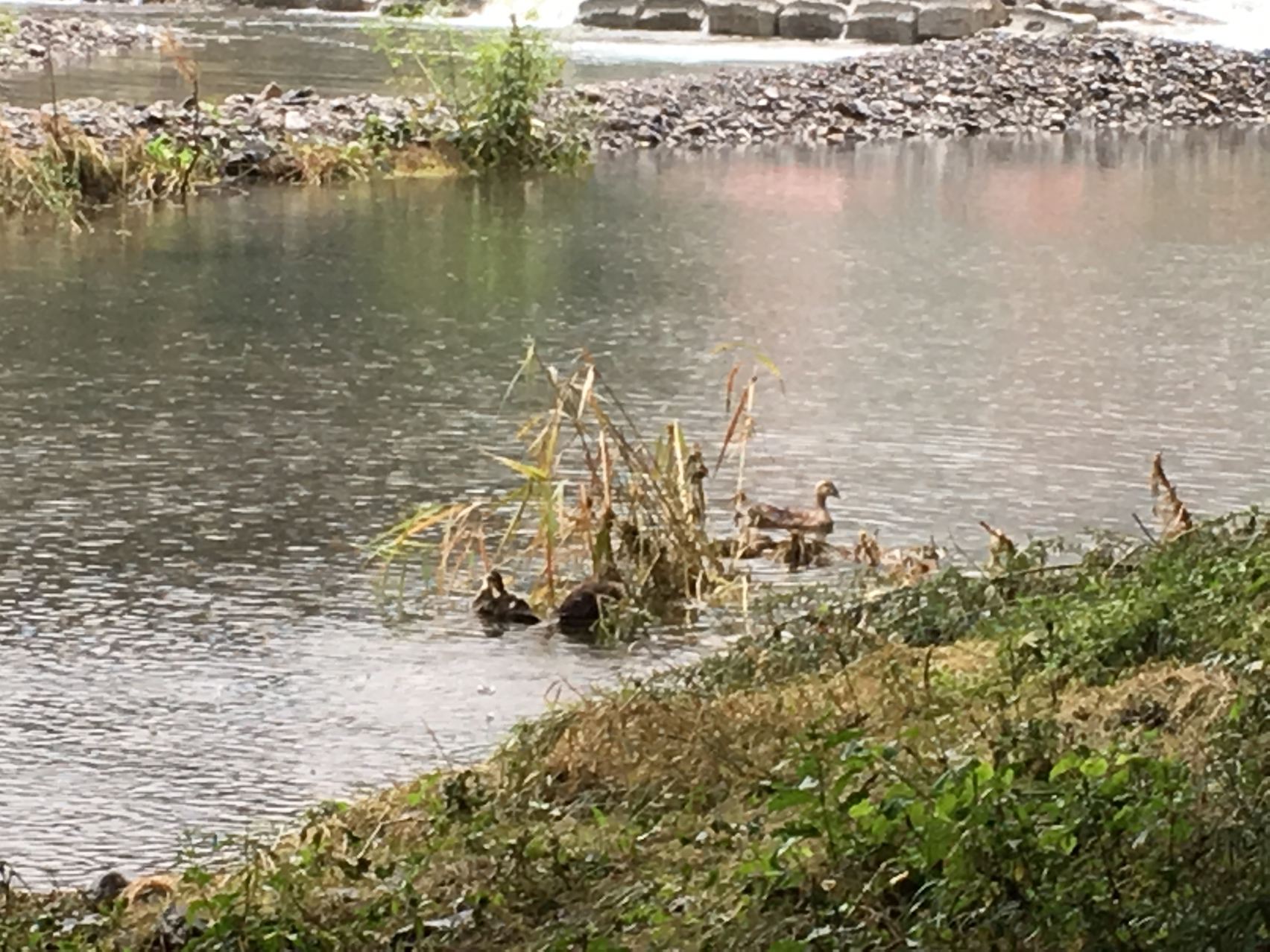 鴨の家族も。笑