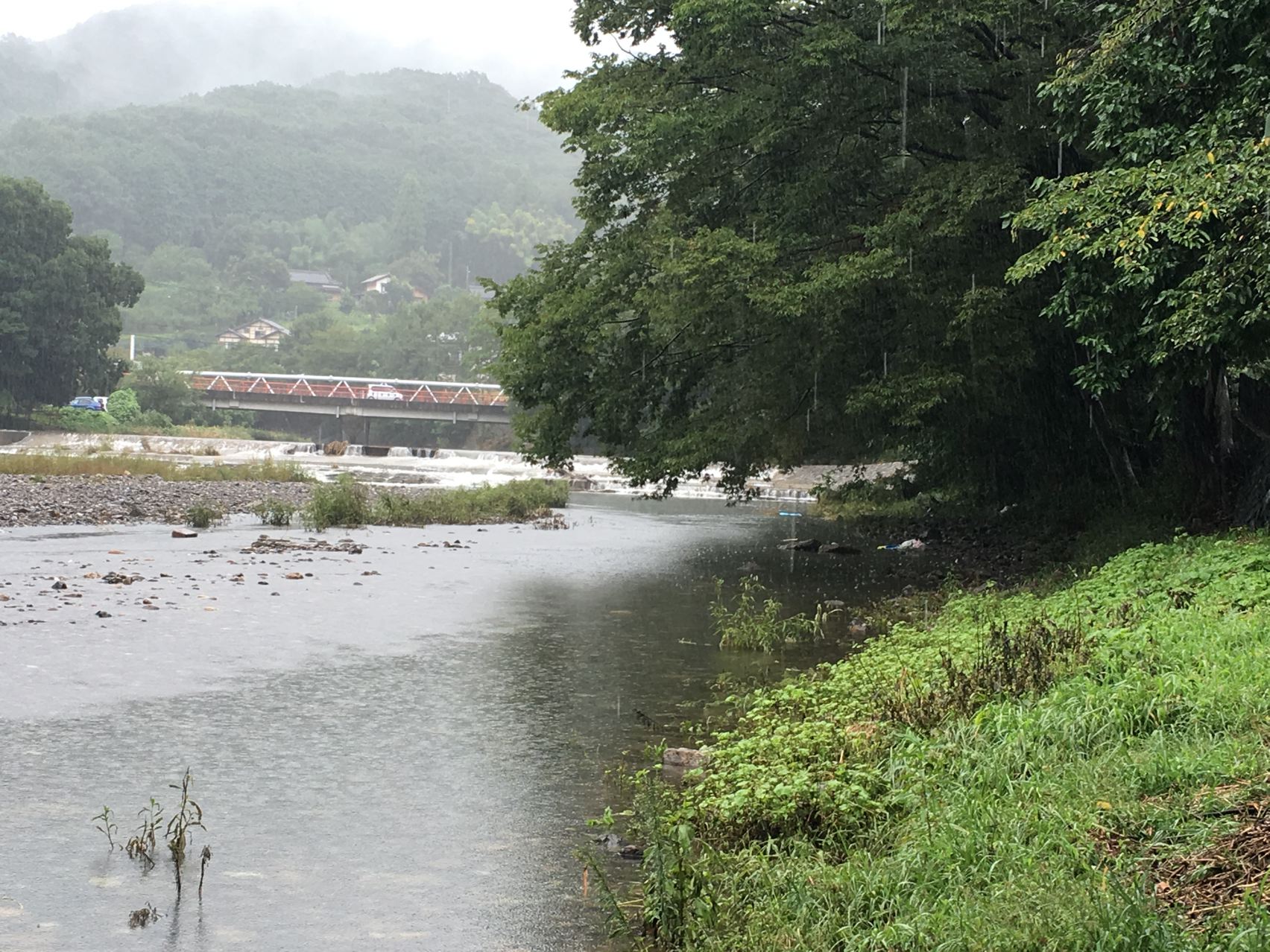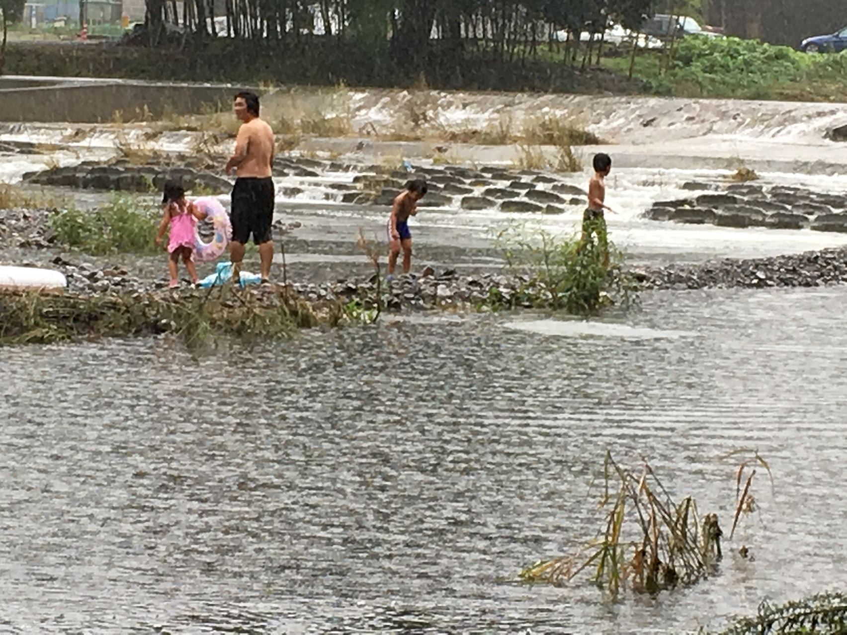 しかしそんな激しい雨の中、川に入って楽しそうに遊ぶ家族に、しびれゔぁ!