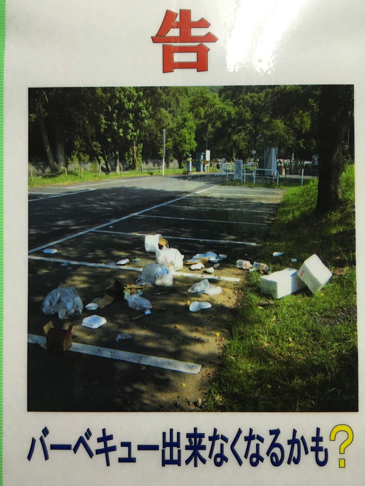 トイレの水場にこんなポスターが貼ってありました。やっぱり無料のキャンプ場なのでマナー悪いのかなぁ。いつまでも無料で楽しめる様にゴミはちゃんと持ち帰りましょう。