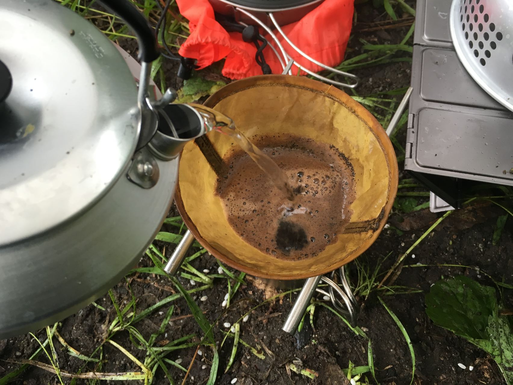 落ち着いたので珈琲を淹れて、うみゃ~!ストームクッカーのやかんもハンドドリップには便利です。
