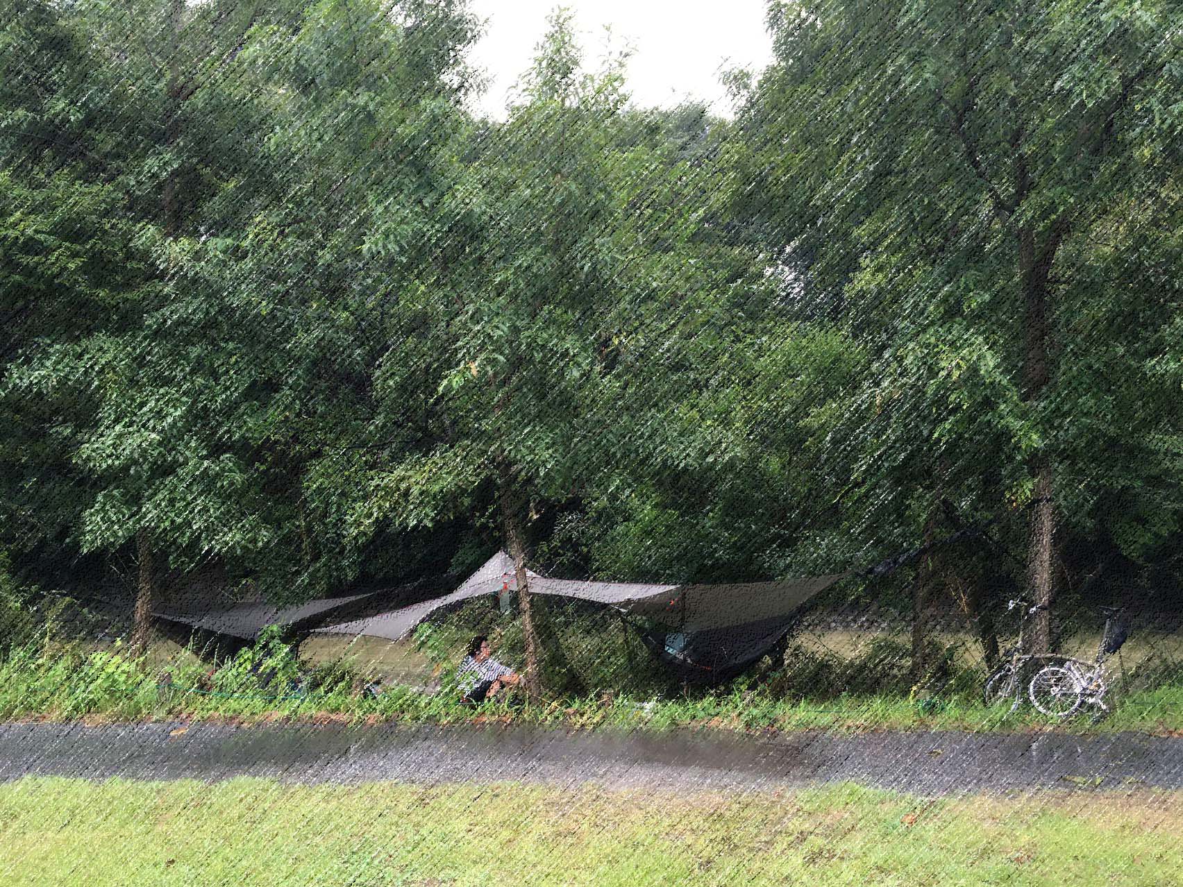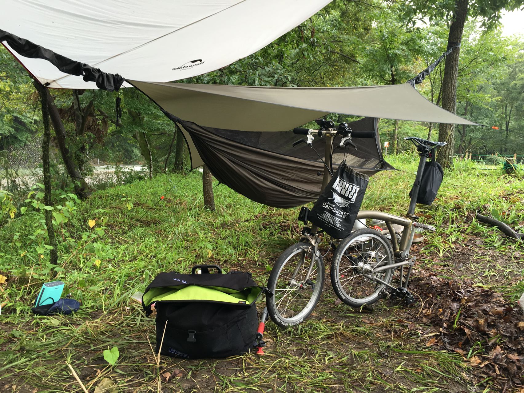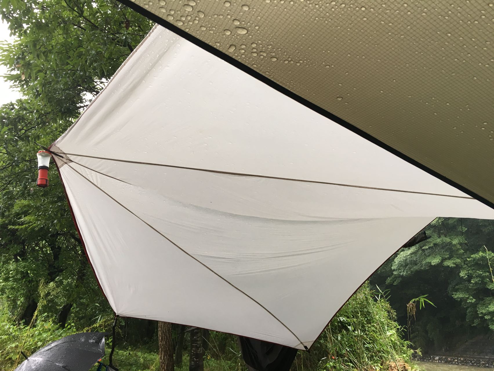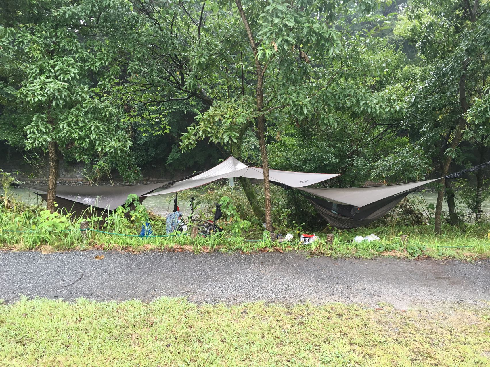 リョウさんがタープを持ってきてくれたので助かりました。やっぱ雨の日はタープ必須!