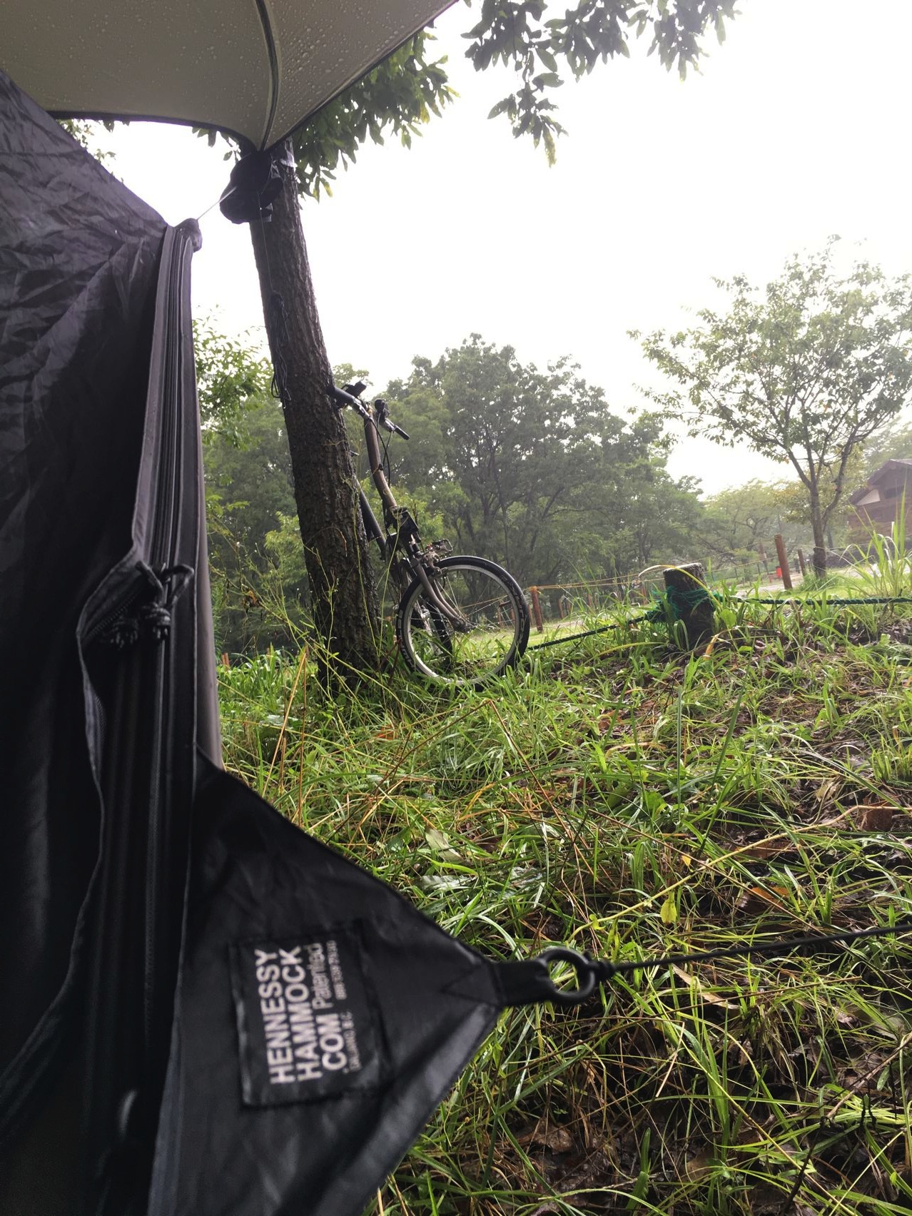 リョウさんのヘネシーハンモックはクラッシックと言って、底の自動ドアから出入りするタイプです。ヘネシーならではの方式ですね。