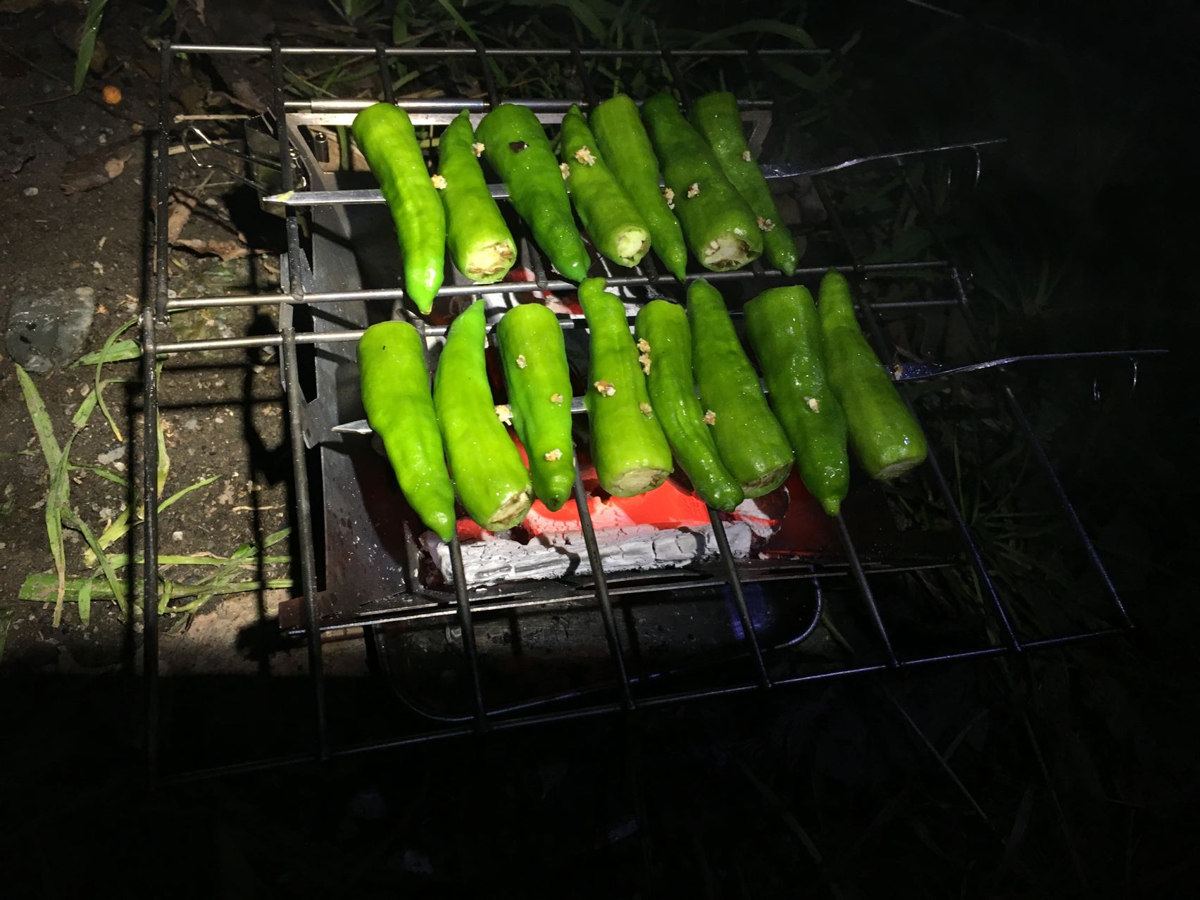 100円の高知産ししとうも一緒に焼きます。
