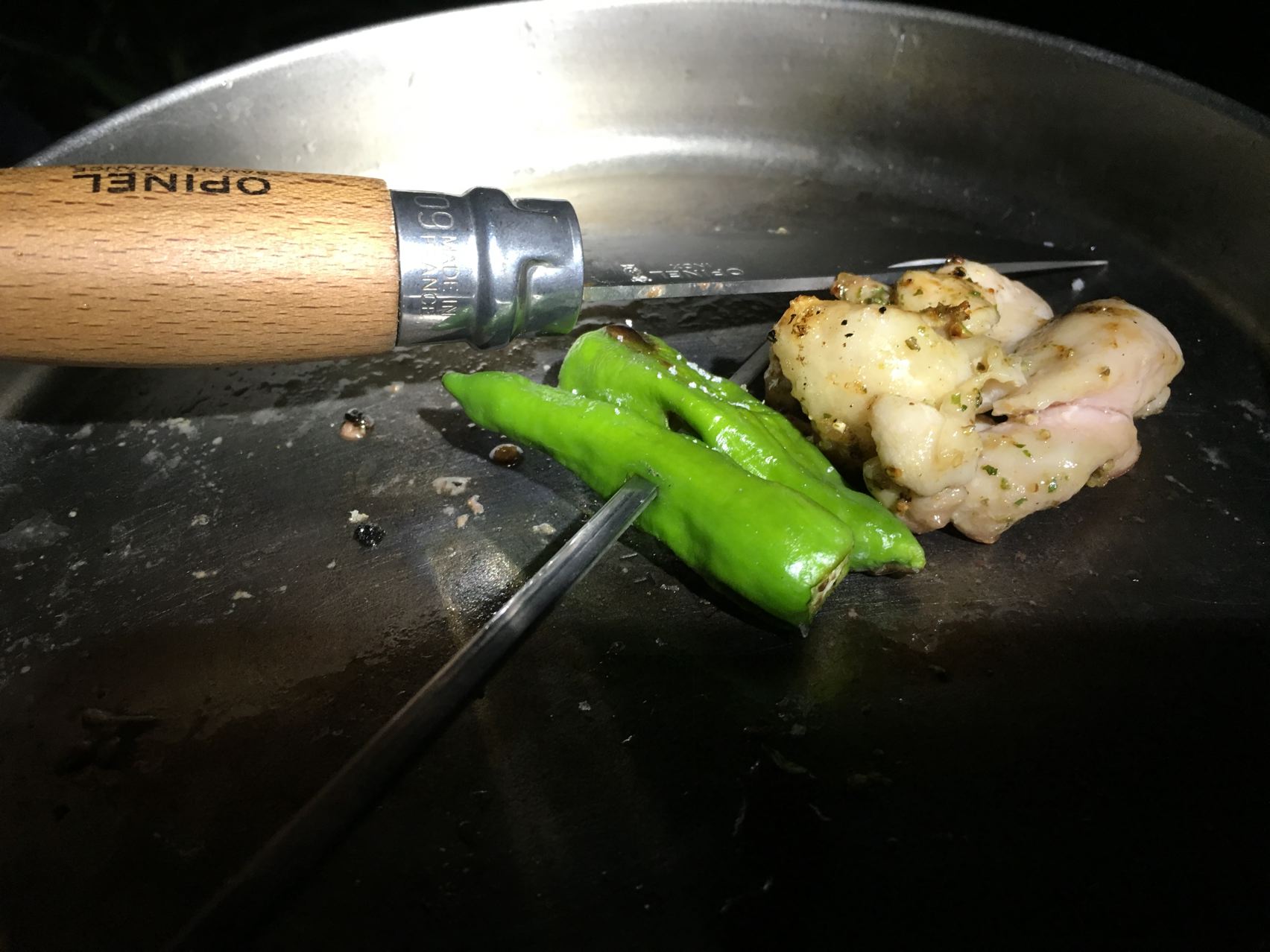 昨日の残りのシシトウと焼鳥も食べちゃいます。