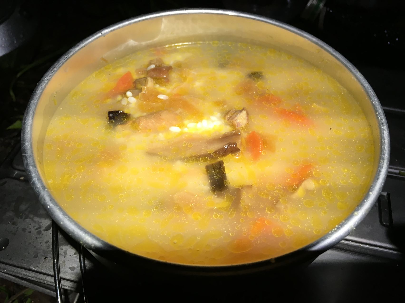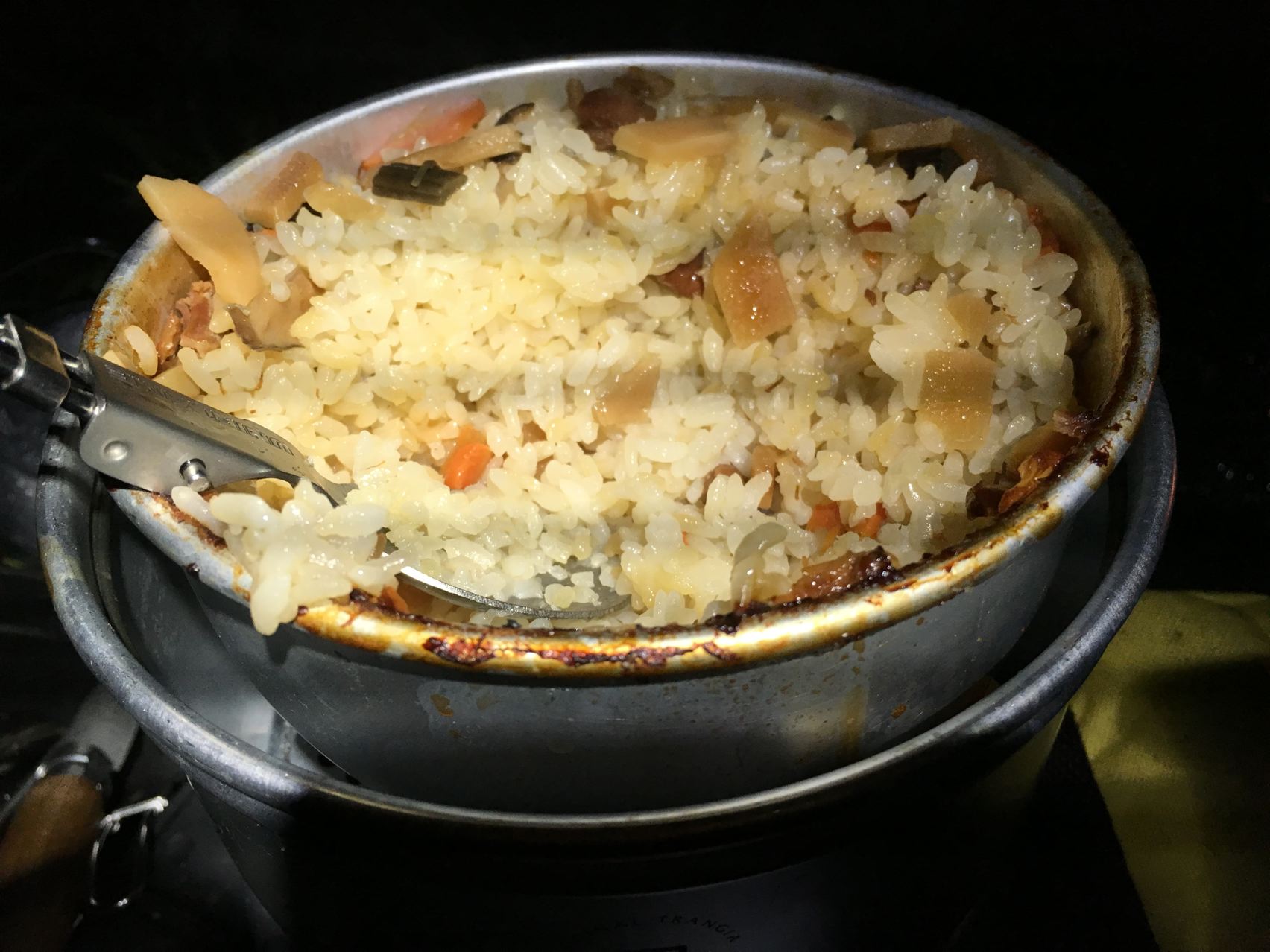 初めてストームクッカーでご飯を炊きました。焦げた。