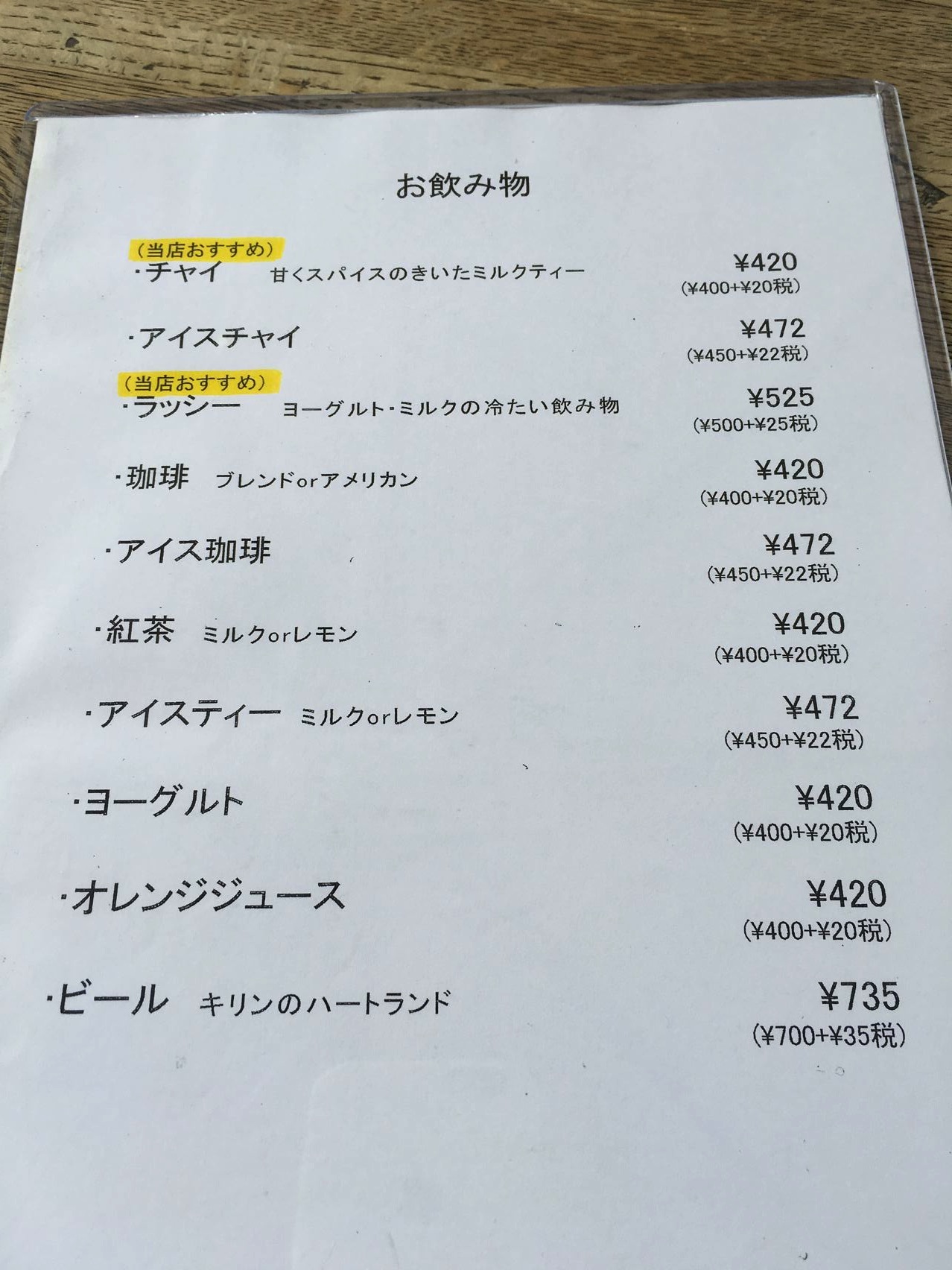 インドカレーにチャイを頂きましたが、高い割にイマイチでした。ぬ〜