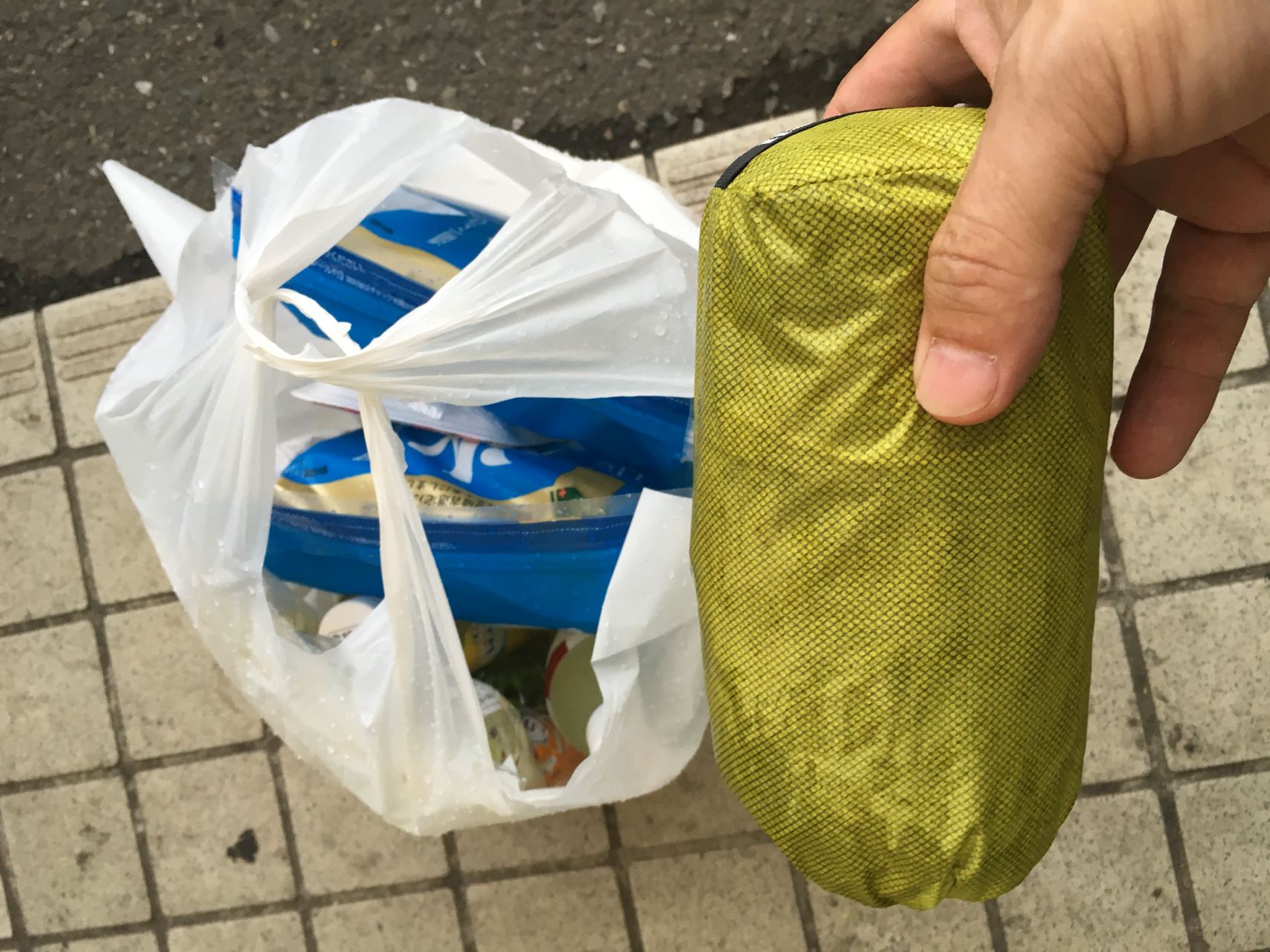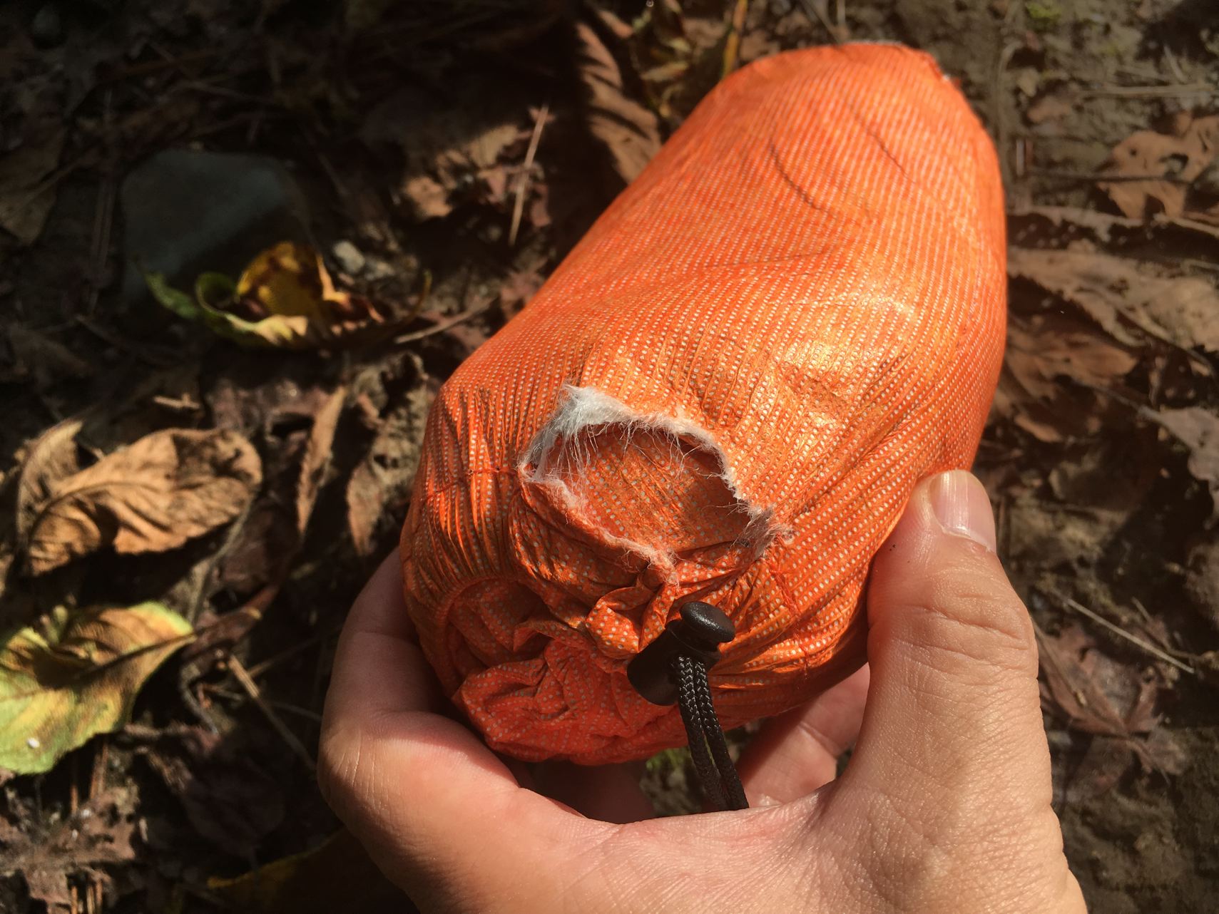 エスケープライトビビィの袋は水に弱いみたい。濡れてたらしくヒモ絞ったら破けた!