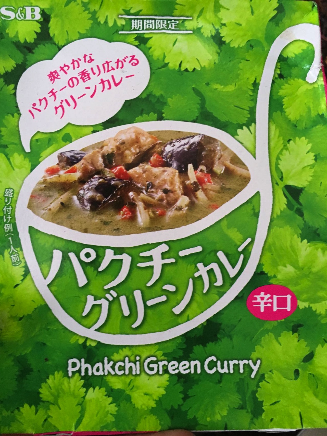 ご飯炊けて、本日のランチは、パクチーグリーンカレー!う、うみゃ〜!