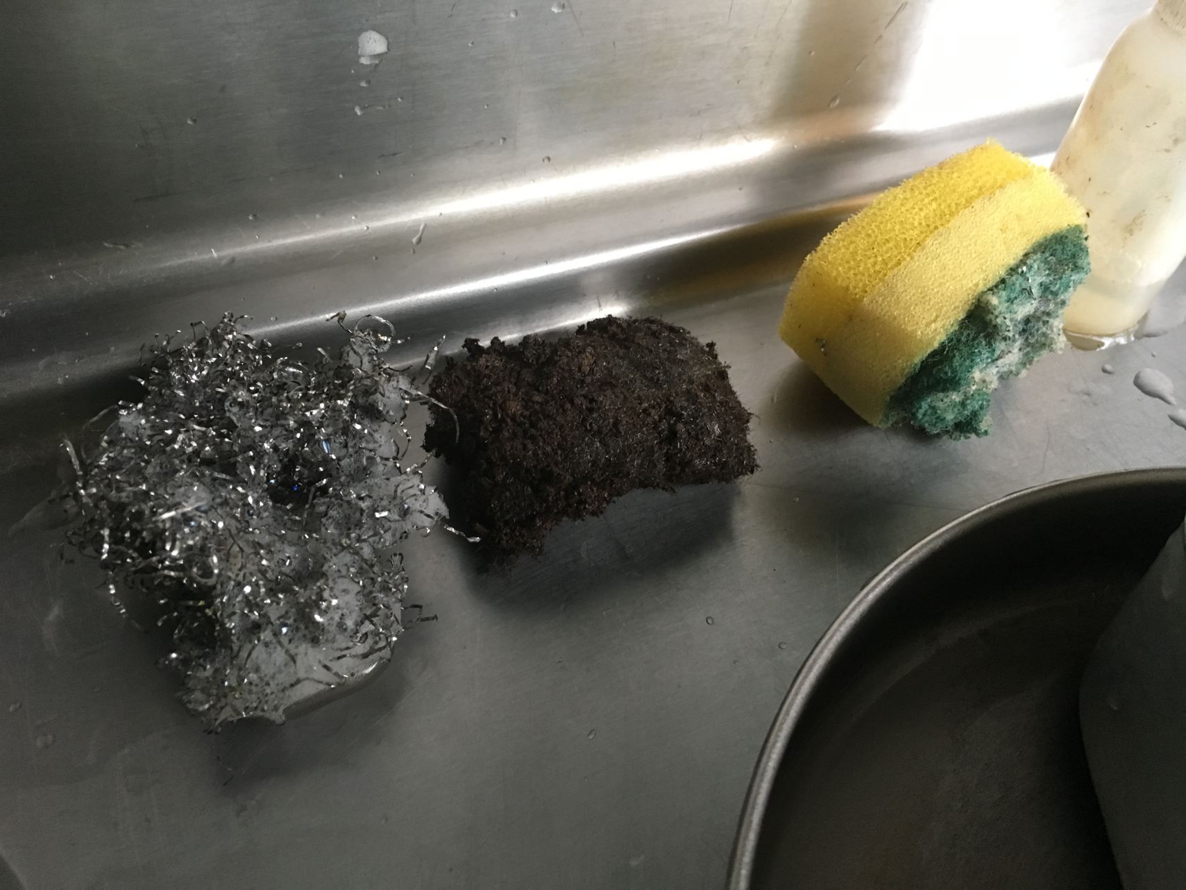 洗い物だよ人生は。今回は、スポンジ、ボンスター、スプリング金束子。最強トリオです。