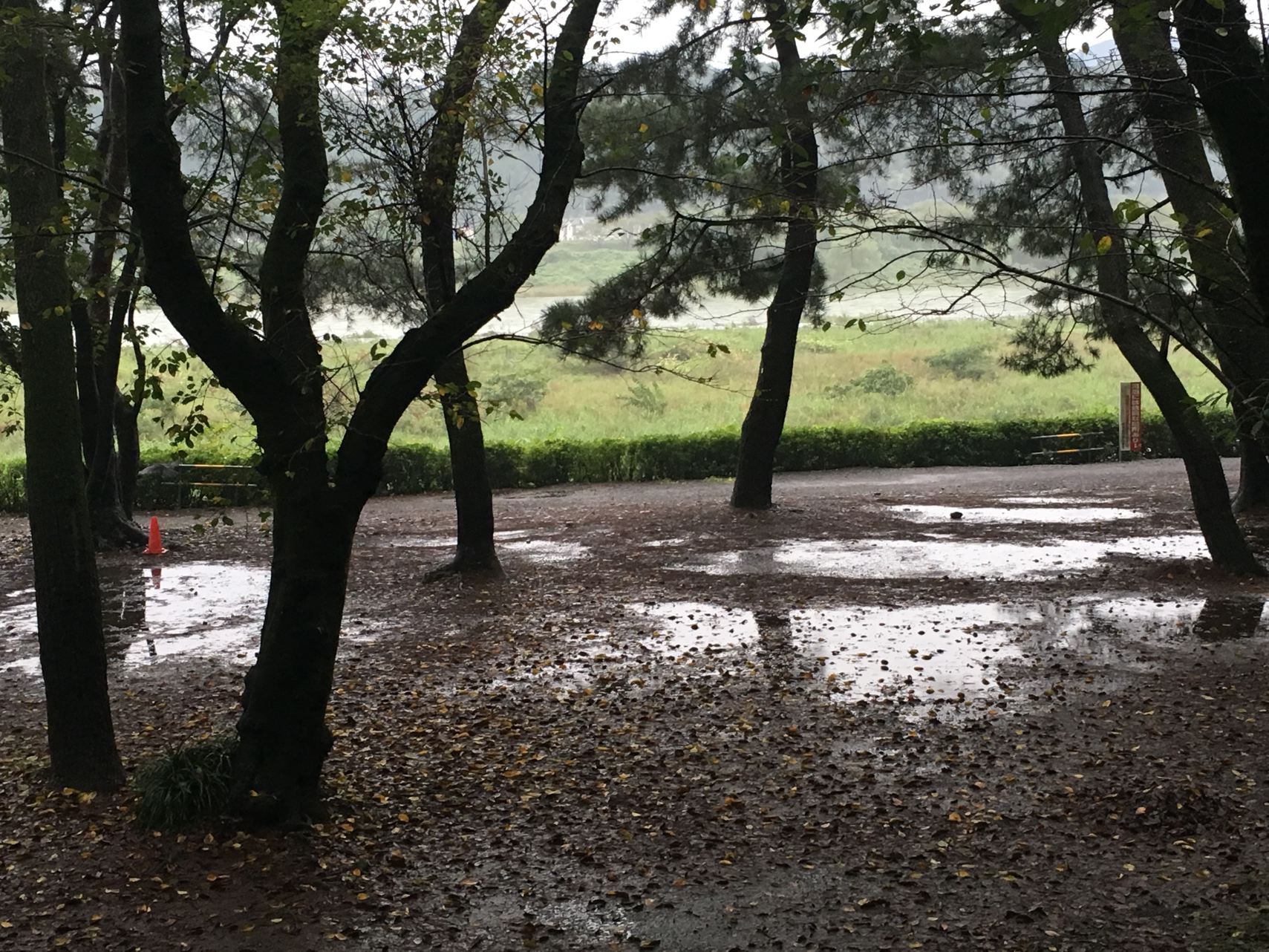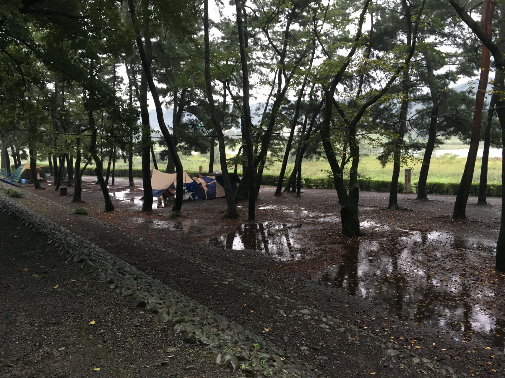 天気が悪いのでキャンパー少なし。水たまりも既にだいぶ溜まってました。