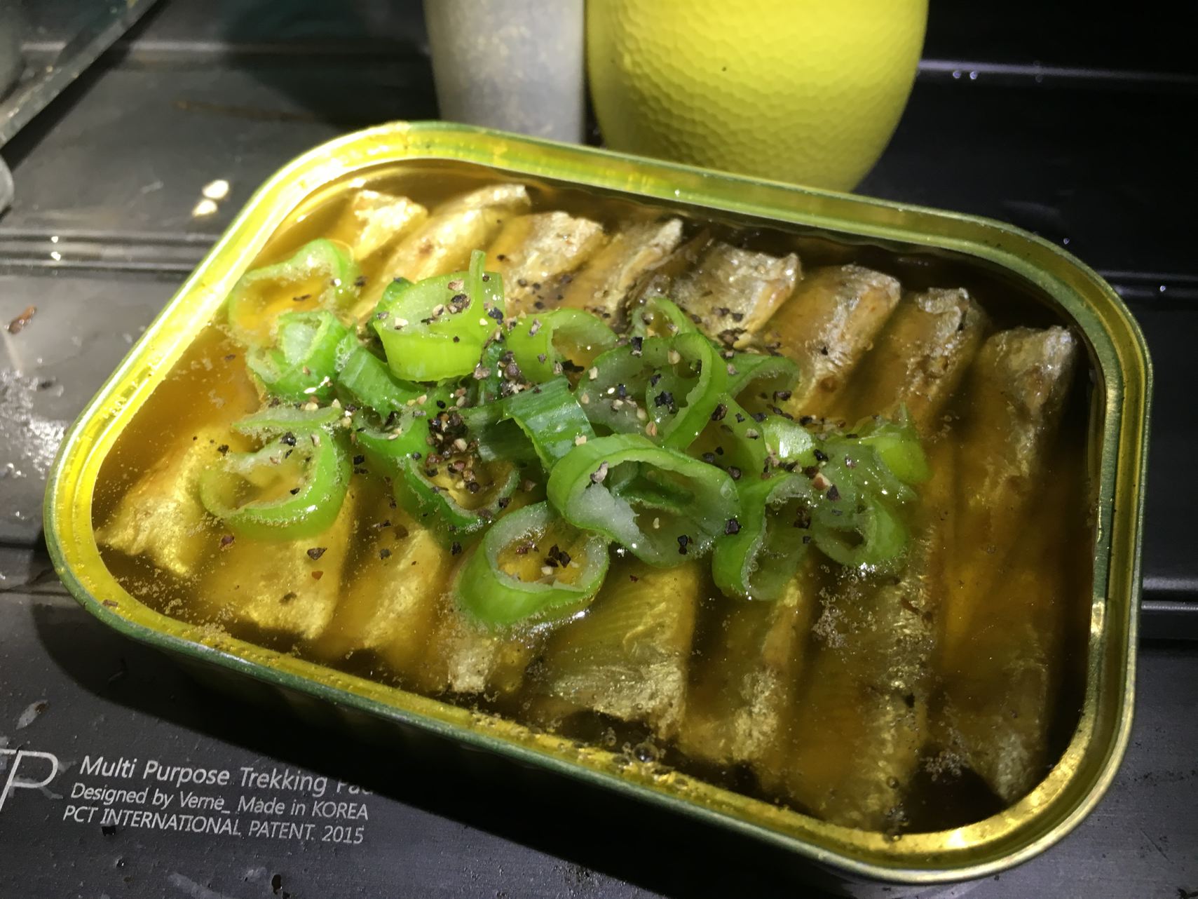 天の橋立のオイルサーディン(+刻み葱、黒胡椒、レモン汁)をアテにして・・・