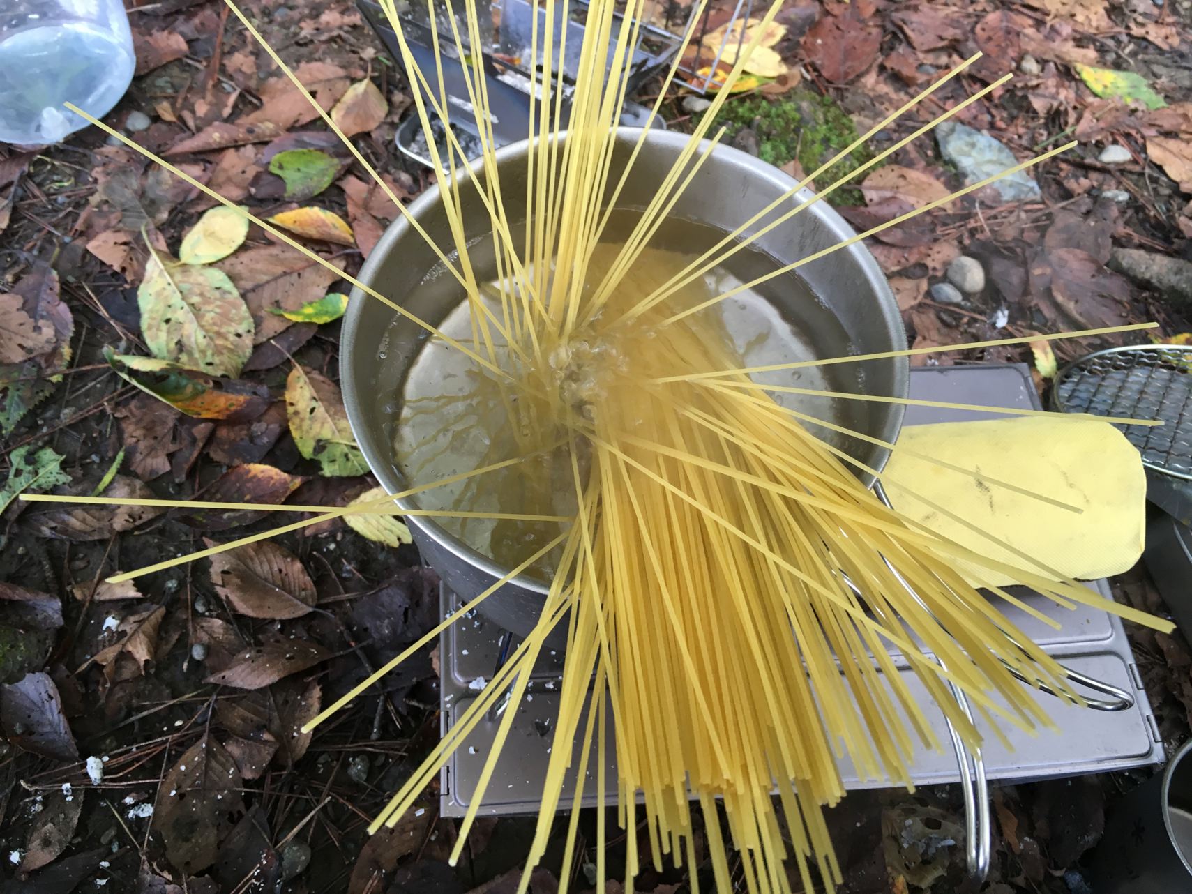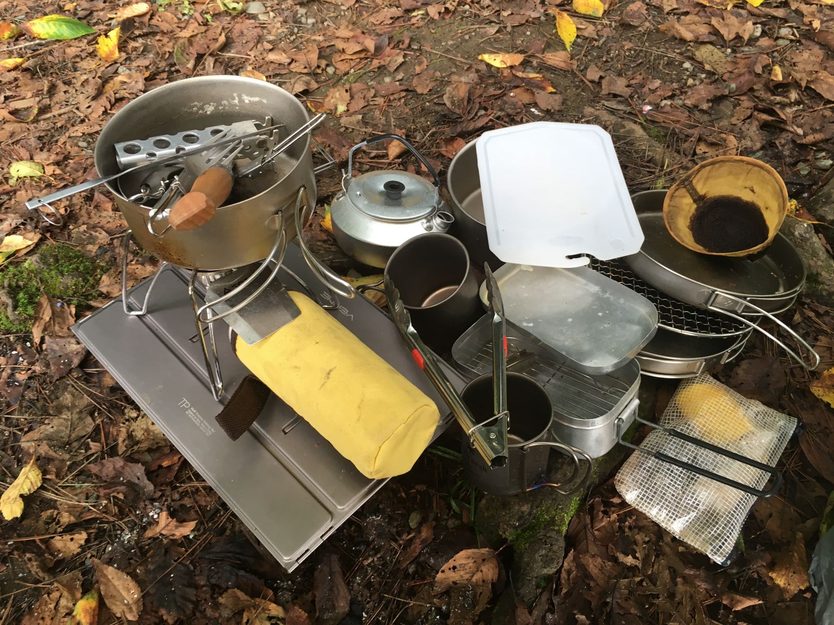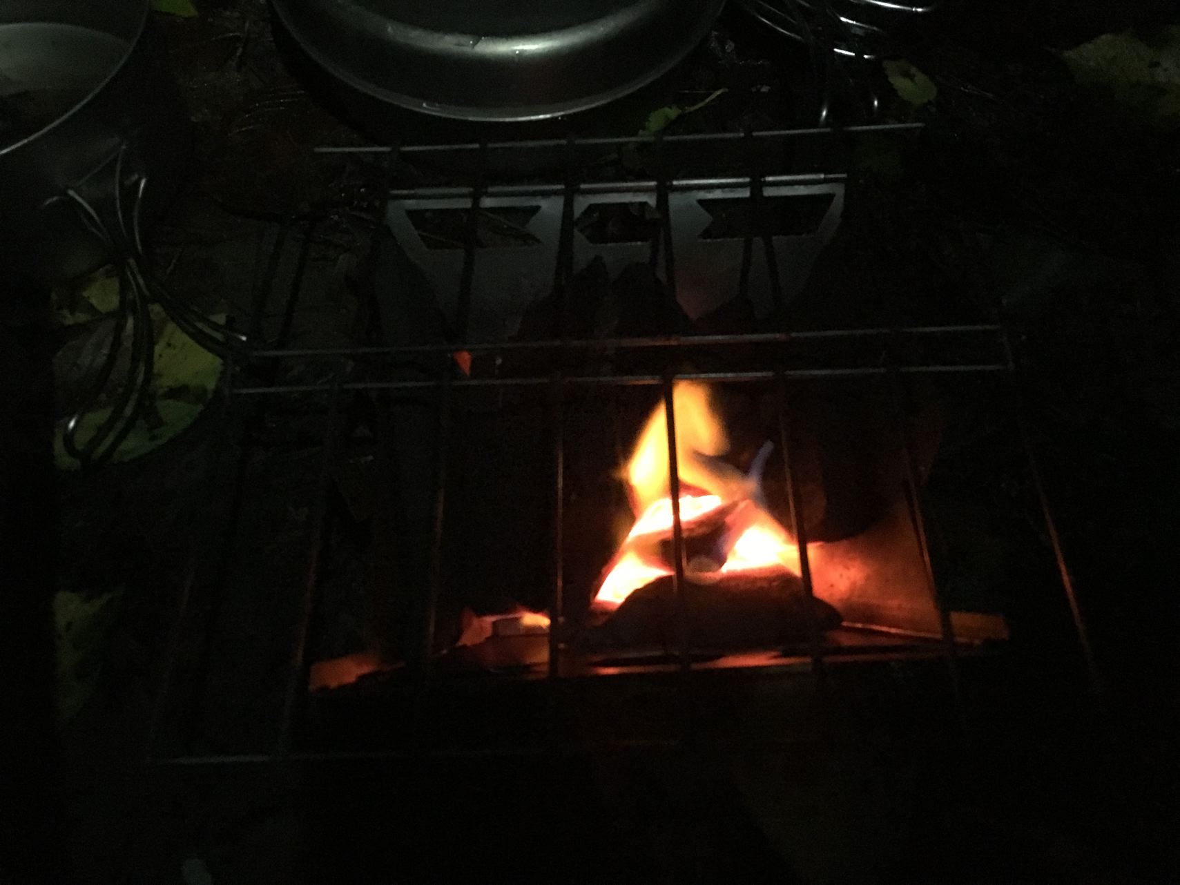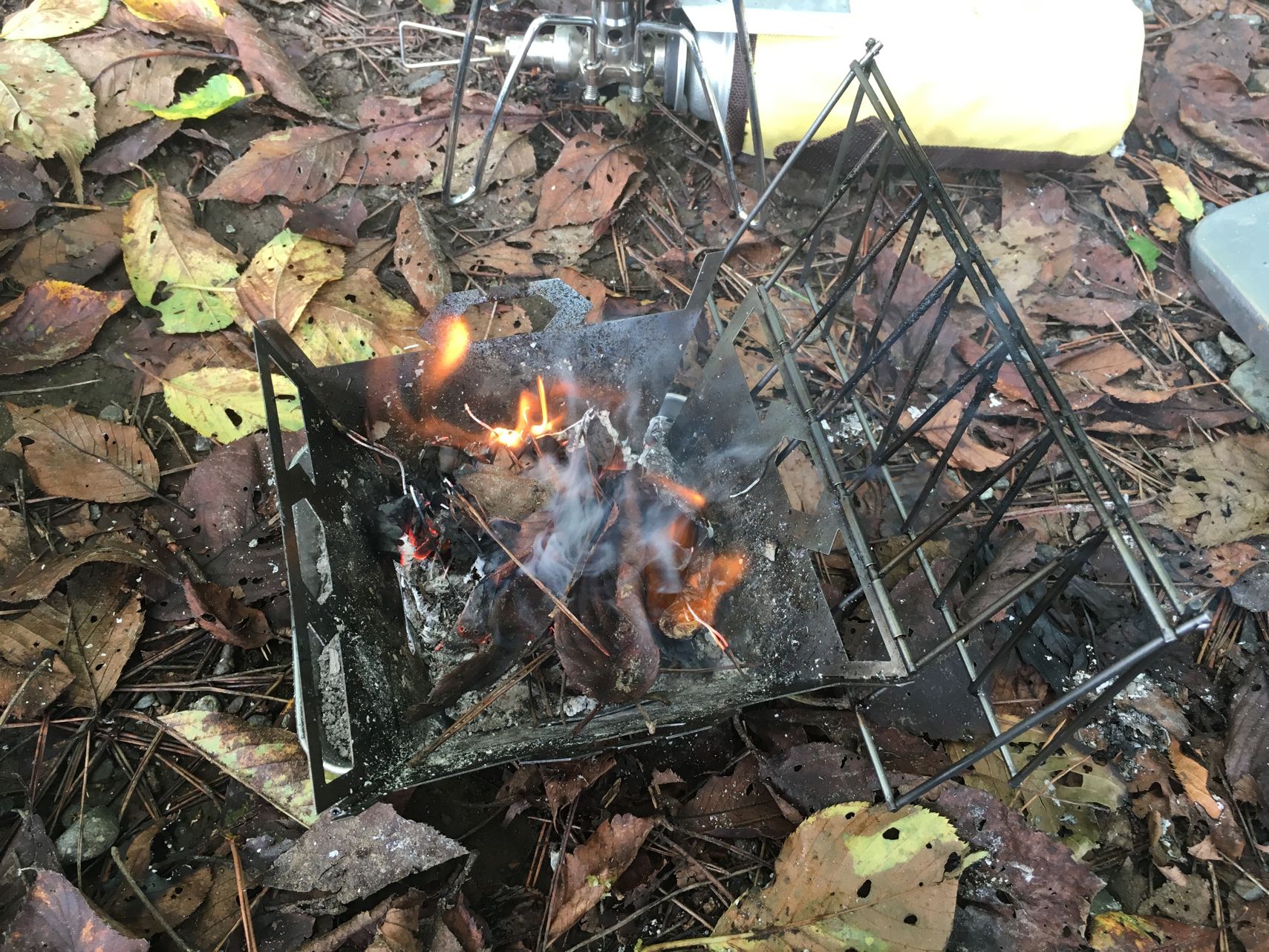 残りの炭火を火種に秋の枯れ葉で焚火したりしつつ・・・